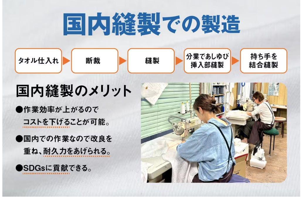以上の予定で、タオル生地発注済みで、生地の製造のタオル工場(泉佐野市)と縫製工場(岸和田市)は近いためやりとりがしやすいです。