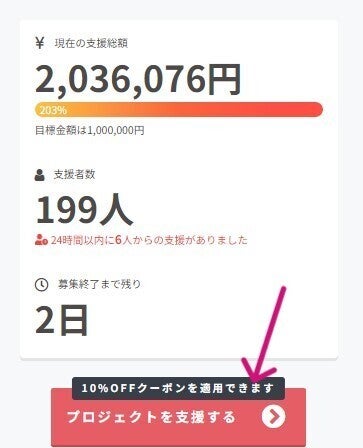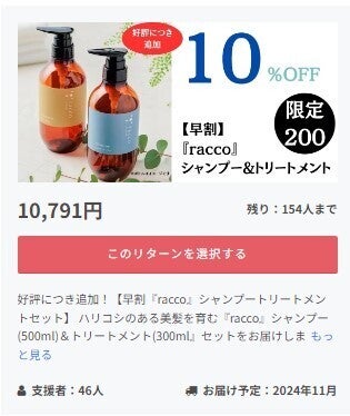 このURLから入っていただくと、500円オフでリターンを購入できます。