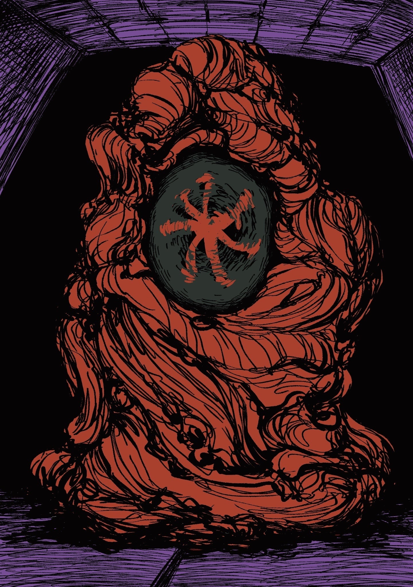 彼岸花から生まれた造形は、見る者を美しく魅了します。長女琴子の守護神である「ひがもん」は、世界で唯一の特殊造形作品です。この「ひがもん」という名称は、現場で「彼岸花から生まれたバケモノ」として親しまれていたことから名付けられました(名付け親は、この守護神を創り上げたはきだめ造形の土肥さんです)。また、白石晃士監督の直筆による「ひがもん」の原案データも付属します。細部にまでこだわりぬいた等身大の「ひがもん」に中に入り、守護神の気分をぜひ味わってください。
