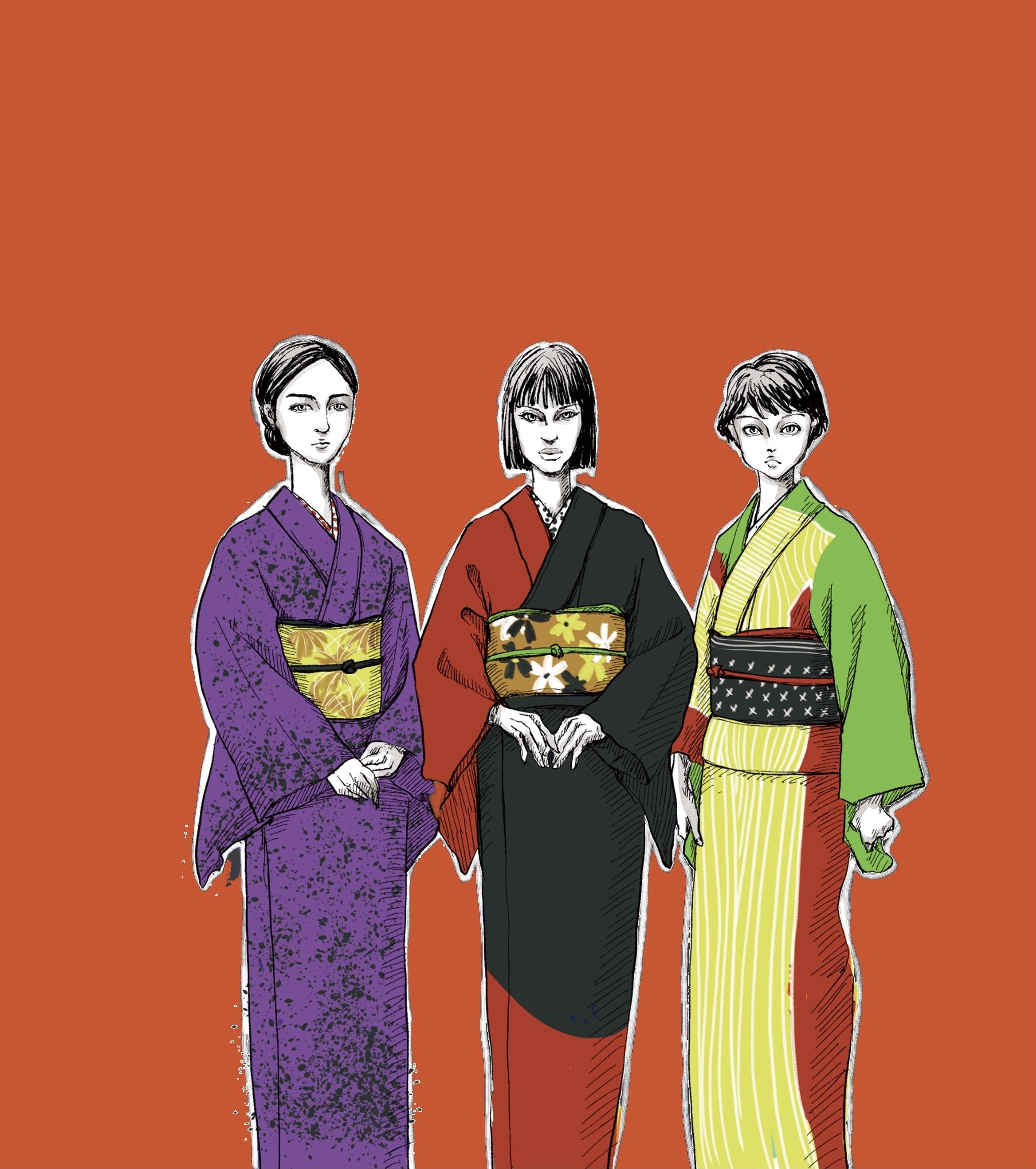 葵那那とは… 9歳の時に親が⼀家⼼中を図るが、⻑⼥琴⼦によって命を救われる。原因となった詐欺師への復讐を琴⼦と共に誓い、呪術の修⾏に励む。複数の⼥の怨念が絡み合った精霊を守護神とし、暴⼒的な呪⼒を発揮する。三姉妹の中で最も社交性があるが、同時に、いつも怒っているのではないか、というような怒りを内に秘めた雰囲気を放っている。琴⼦を慕い、その呪⼒にも敬意を持つ。妹の阿⾒に対しては、そのあまりの⾃由さに腹⽴たしく感じることがあり、よく注意したり叱ったりしている。