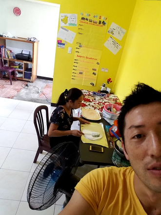 フィリピン人への研修方法! というのも、国内の企業で9年間営業として働いていた私ですがビジネス本でマネジメントに関する書物や分野問わず幅広く読書しておりました。 基本は山本五十六の言葉にあるように 「やってみせ、 言って聞かせて、 させてみせて、 誉めてやらねば、 人は動かじ。」 でやっております。しかし、私の舞台は「フィリピン」なので彼らの特徴を汲み上げて楽しみながら学ぶというスタイルで毎週末研修を行っております。カメラを向けるとこんな感じで必ずポージングを決めてくれます★ 手前の女子はミルクレープ作成中に超集中しているためカメラ目線の余裕がありませんでしたが、当店唯一の男子スタッフはいつも陽気です! 私の本業が語学学校の日本人マネージャーで、週末しか研修を開いてあげることができません。且つドミトリーでの調理が禁止となっているので一時間かけてバコロドの日系語学学校Acutilaboさんのキッチンを借りて研修を行っております! この日は3人のみ研修となりましたが毎回4~5時間実施。私は彼らより3時間前に来て商品開発。本来なら一日中時間を費やしたいのですが、集中力が持続しないため4~5時間で毎回完結させています。 それでは本日もActilaboさんのキッチンで商品力をアップしてきます! TAKA