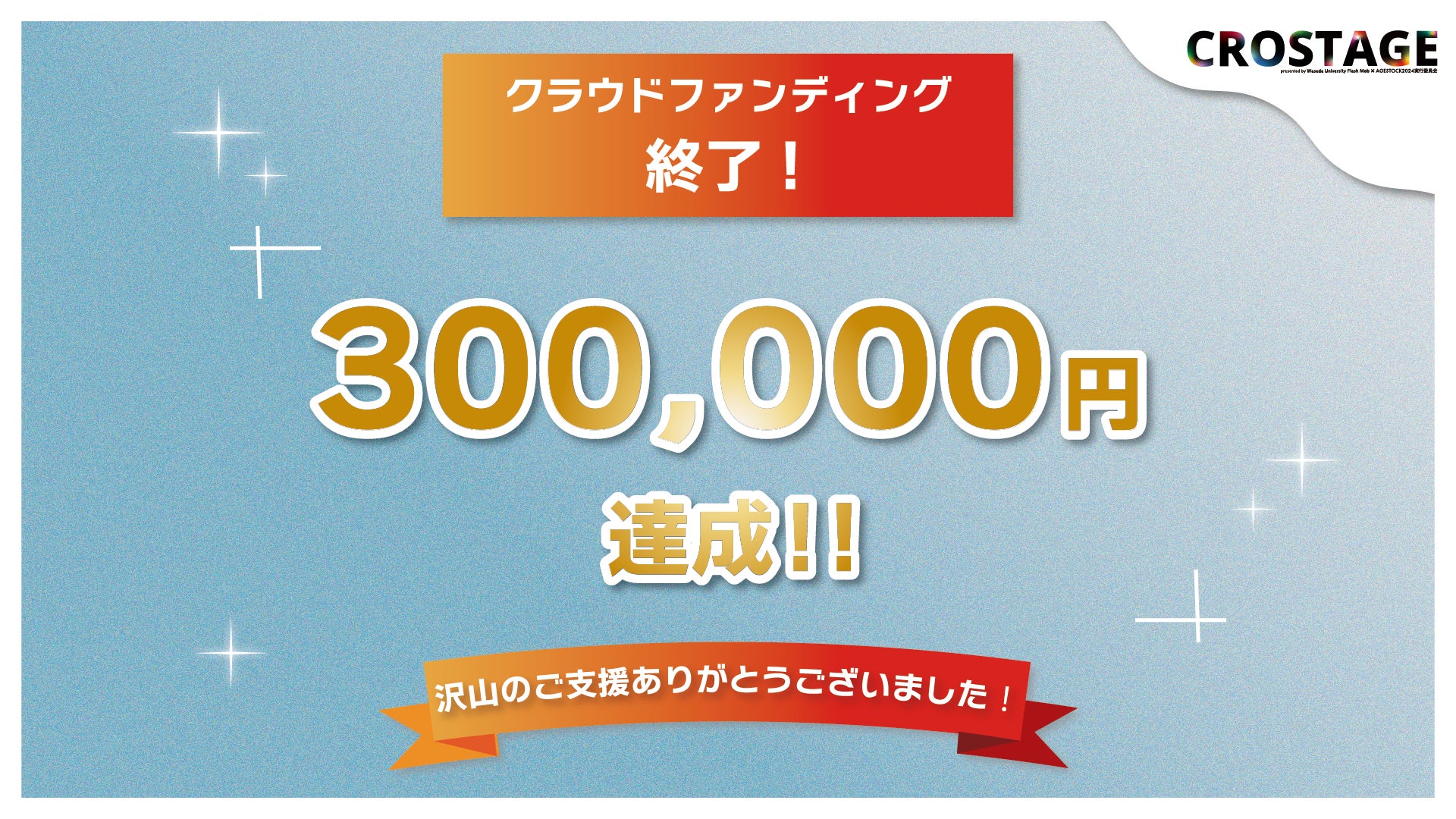 2024/07/22 20:00クラウドファンディングは昨日7/21に終了しました!今回のクラウドファンディングでは合計300000円を集めることができました。1ヶ月半と短い期間でしたが、たくさんのご支援本当にありがとうございました!集まった資金はCROSTAGEの開催に必要な資金に使用させていただきます。来年以降も学生達の熱い思いを伝えられる機会のためにさらに精進して参りますので応援いただけると幸いです。改めてとなりますが、たくさんの応援ありがとうございました。 もっと見る