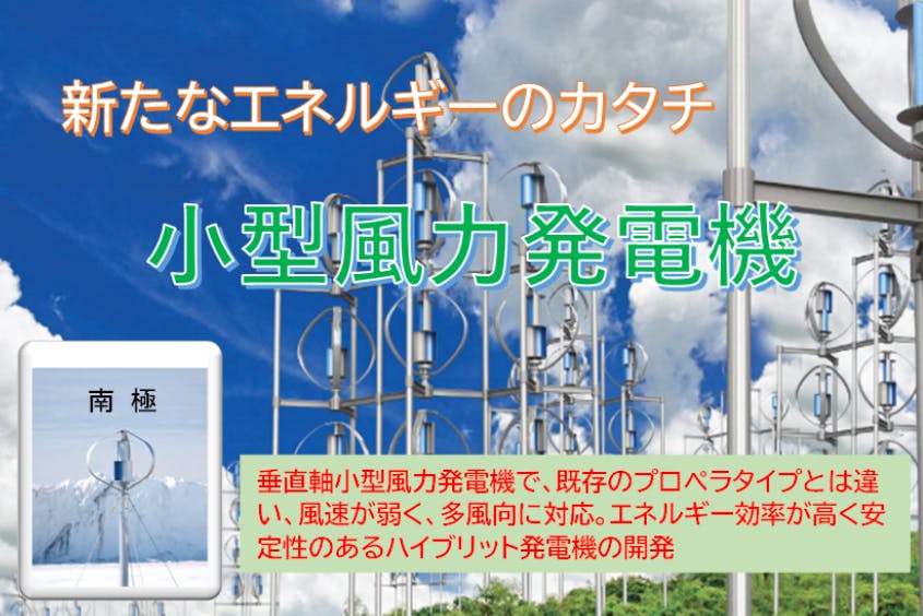 当社は、韓国企業である株式会社エルアンドケーシーティー、株式会社ソーラーオプティクスと提携し、垂直軸型風力発電機を開発しました。この製品をさらに小型化し、微風対応、騒音対策、効率化、軽量化、価格低減を図ることにより、家庭用ハイブリット風力発電機へのグレードアップを図ります。