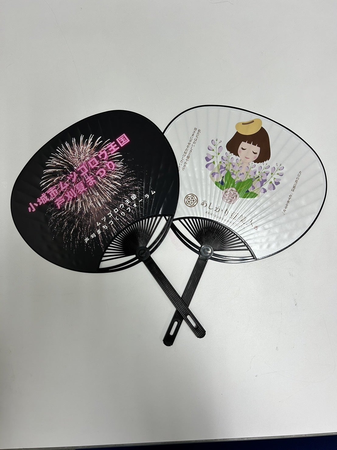 協賛により、うちわも作成し、本日、いよいよ花火大会です!町内の各地にはのぼりも設置して、今日の夕方を迎えます!