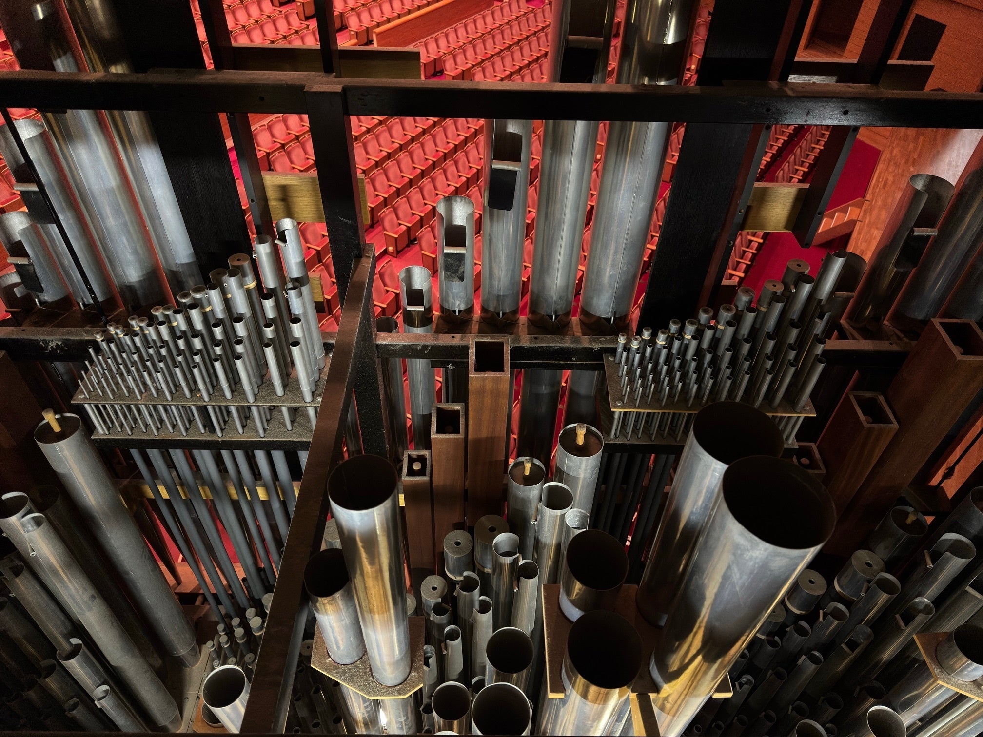 表側からは見えませんが、内側には大小様々なパイプが並べられています。