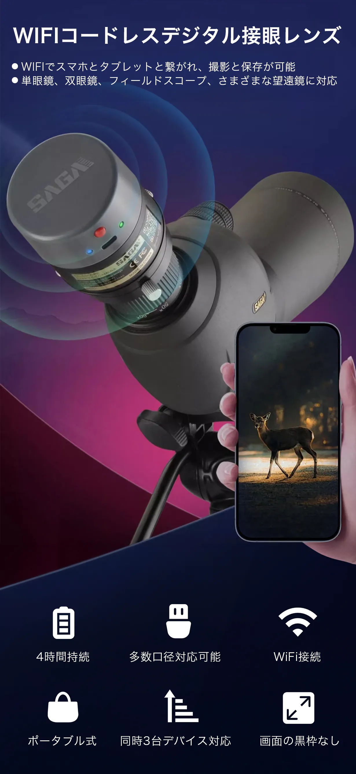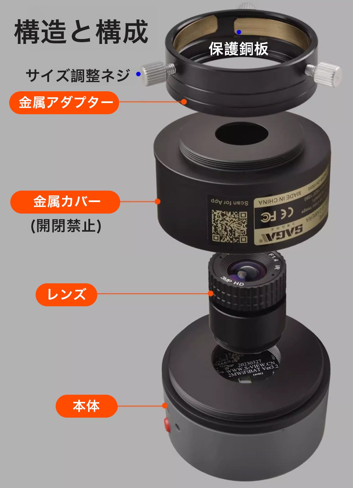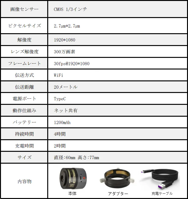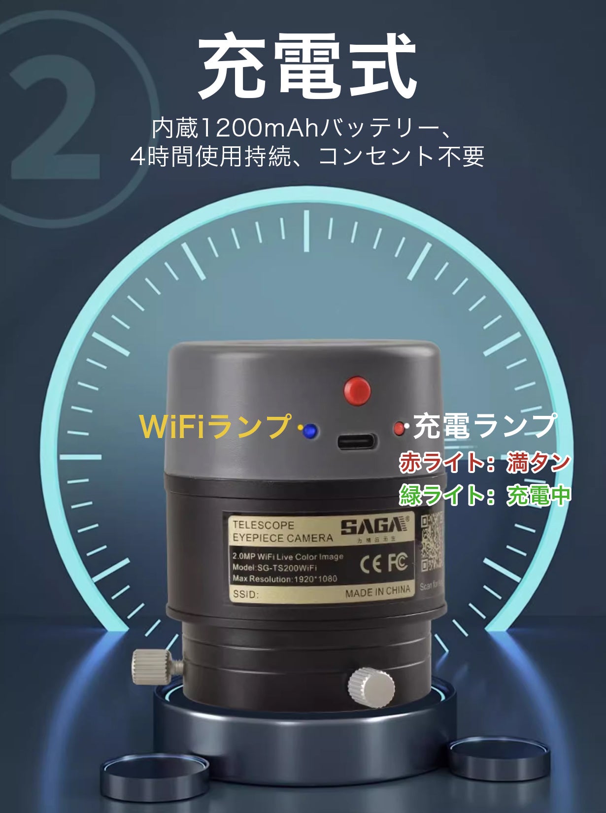 いつでもどこでも観測可能となり、長時間で接眼レンズと密着して覗かなくても良い。メガネを付けた方にも不便はありません。
