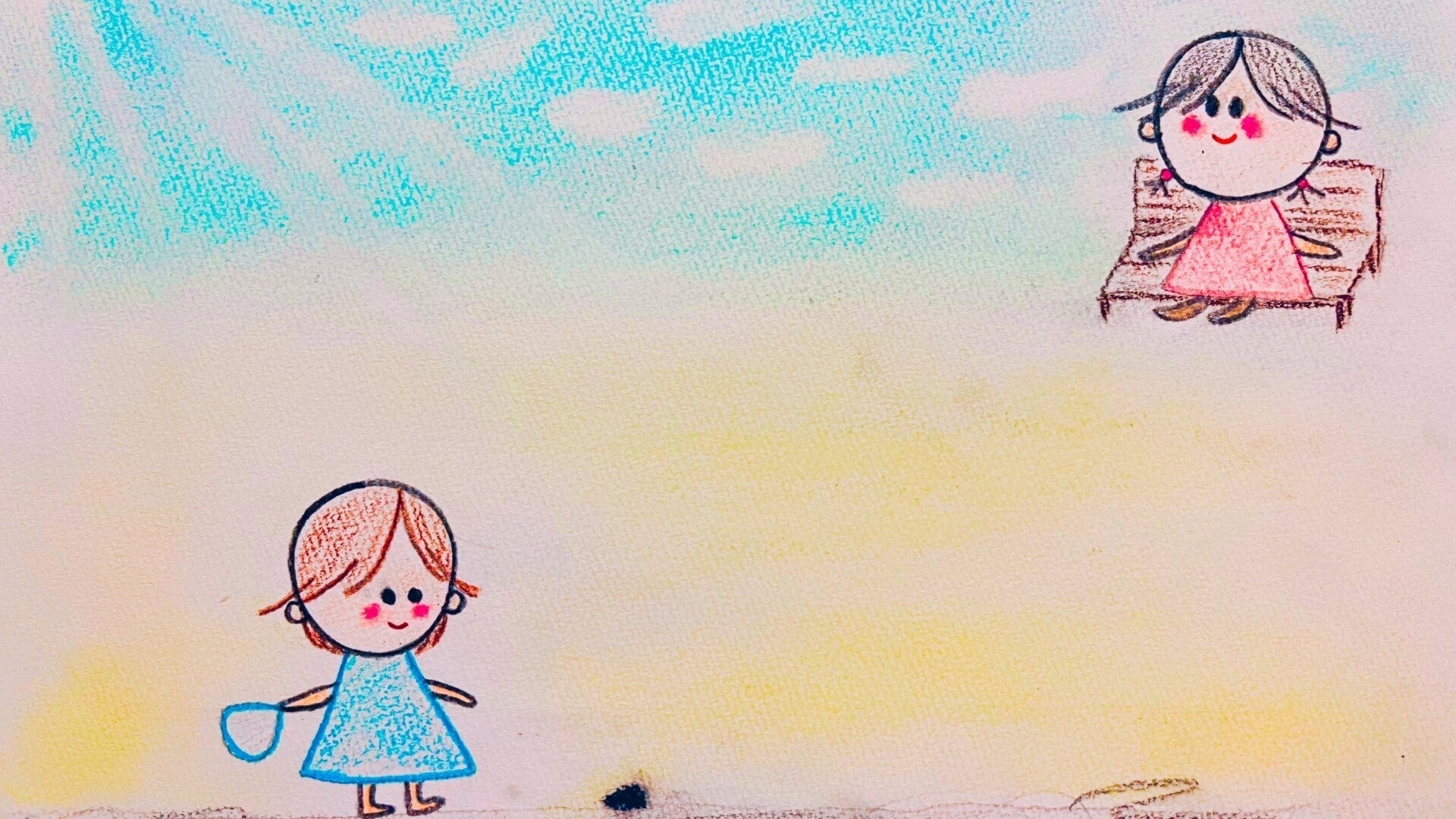 紙芝居『2人の天使むーちゃんとびーちゃん』より