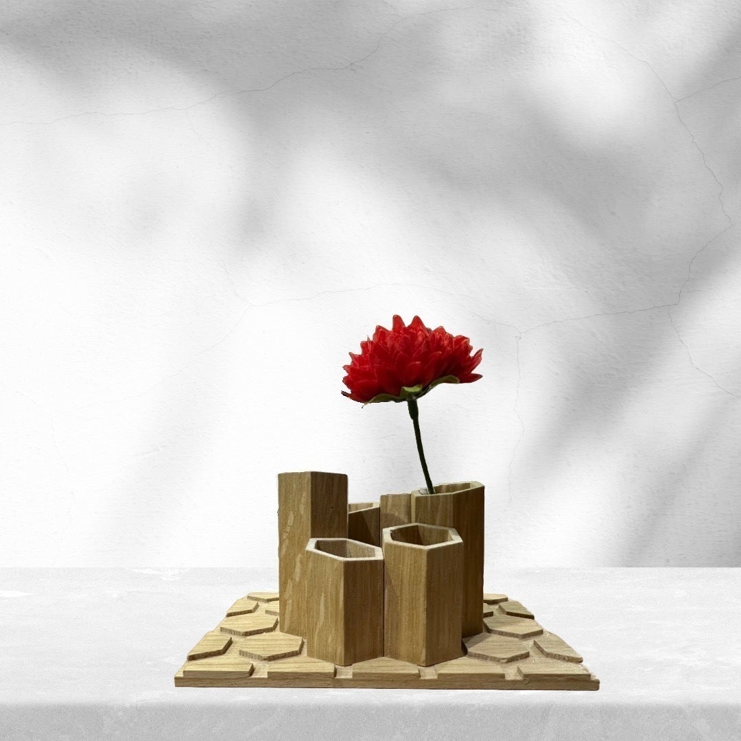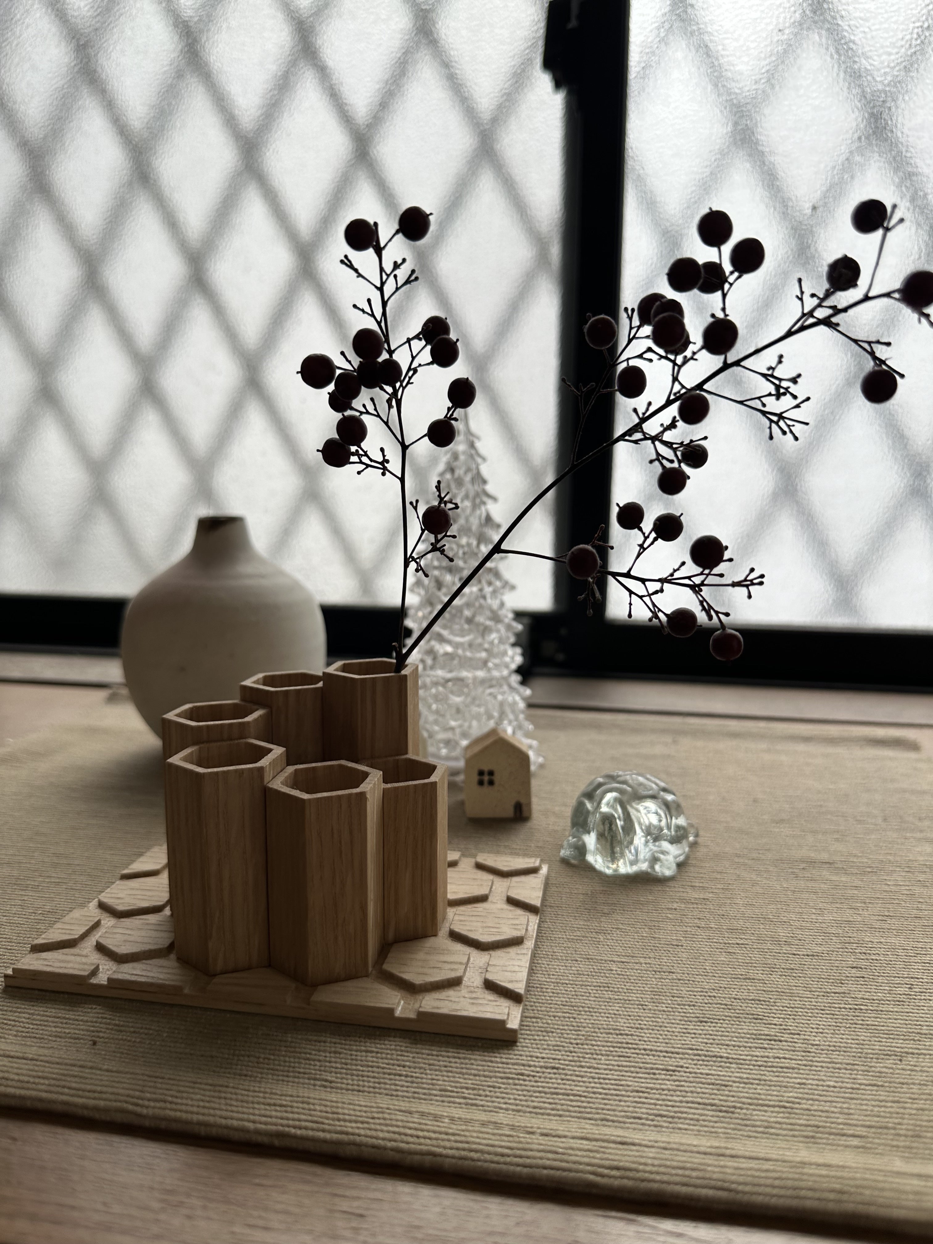 ベースを木筒で繋ぎ合わせることでデザインも自由自在。
