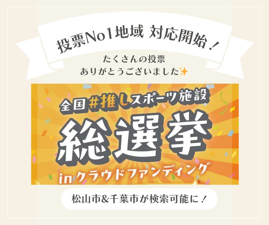 このたび、クラウドファンディングにて開催しておりました、「全国#推しスポーツ施設総選挙 inクラウドファンディング」にて、投票第1位を獲得した「松山市」「千葉市」への対応を開始いたしました。