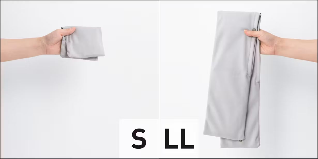 Sサイズは2つ折りにして、ポケットに入れやすい大きさです。