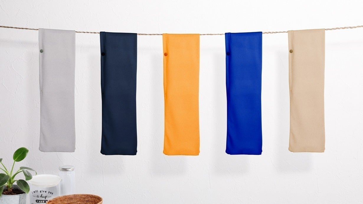 カラーは、左からシックな「グレイ」、落ち着いた「ネイビー」、元気な「オレンジ」、爽やかな「ブルー」、優しい「ベージュ」の計5色です。