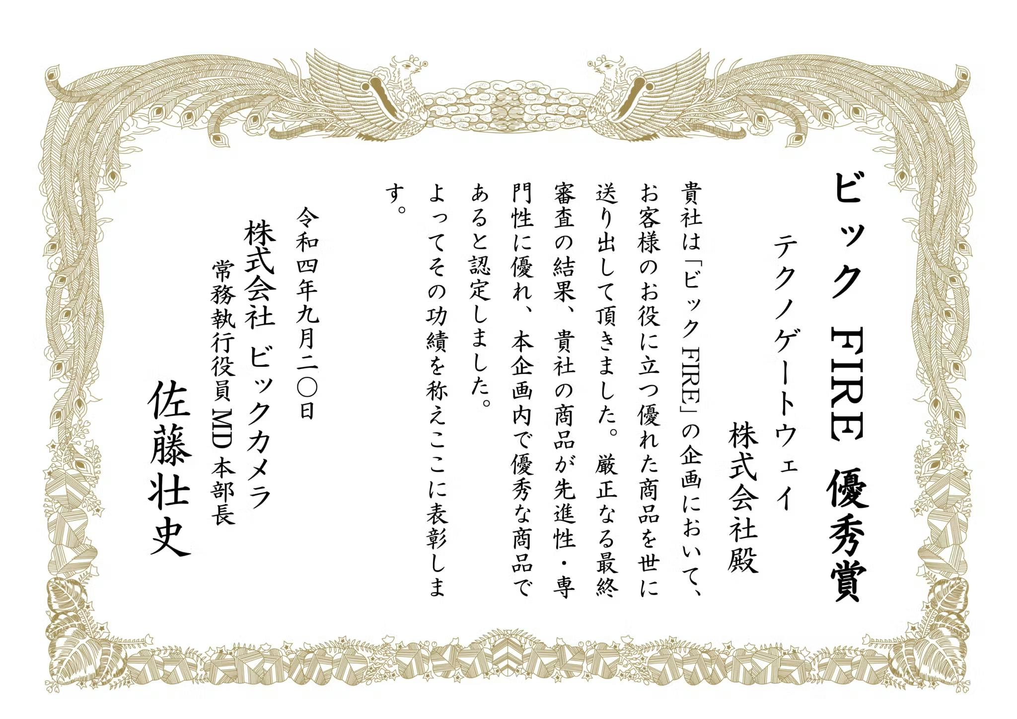ビックFIRE優秀賞受賞・テクノゲートウェイ株式会社12周年の感謝を込めて、