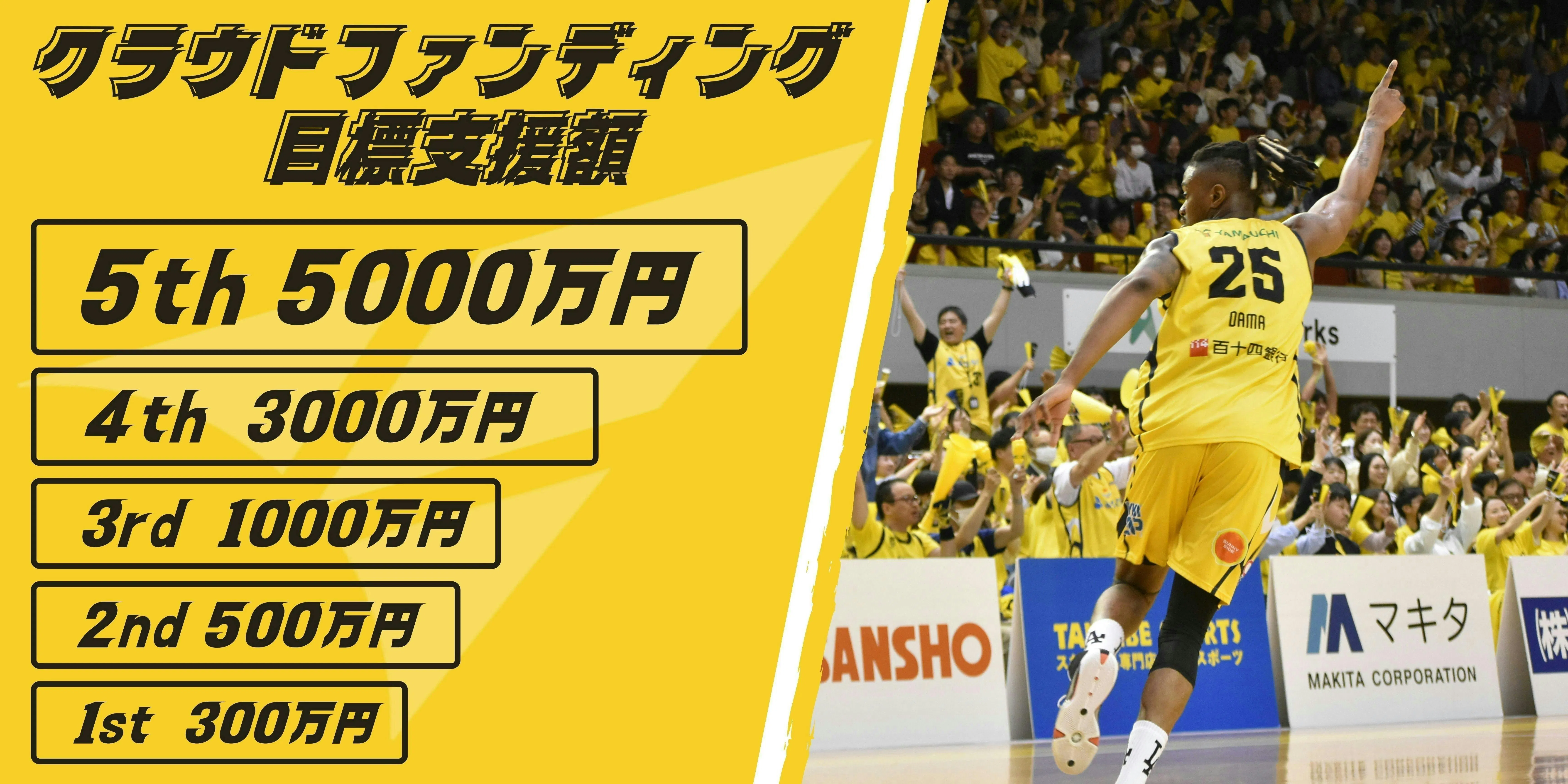 香川ファイブアローズを支えてくださる皆さま、香川県民の皆さまが誇れるクラブとなる強い決意を持ち、進めてまいります。そして上記を成し遂げるうえで目標額を5つのゴールに分けて設定をしました。