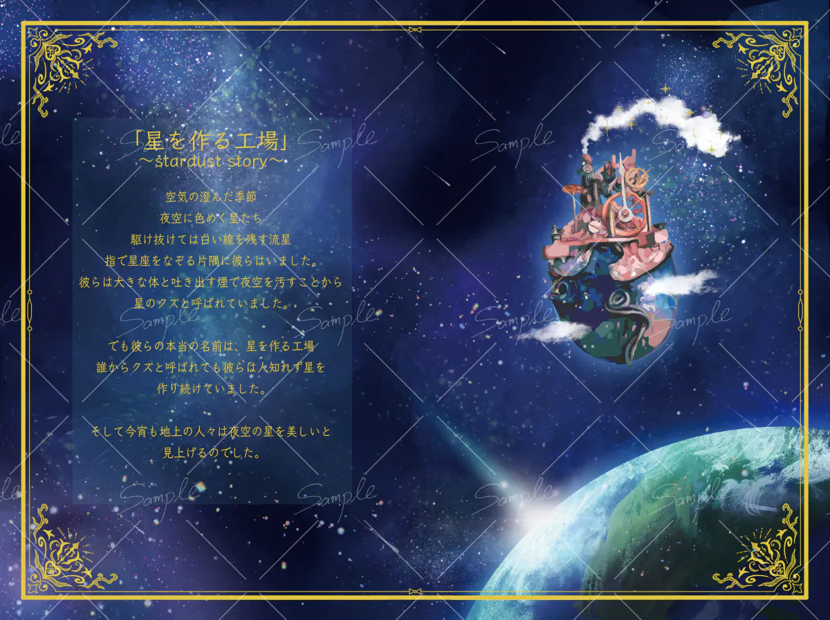 宇宙に浮かぶ大きな星を作る工場。彼らは地上の夜が暗闇にならないようにと毎日休まず明かりを灯す、星や星座を作っていました。