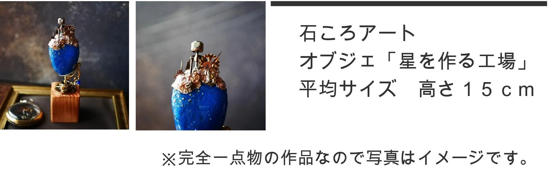 石ころを丁寧に洗浄し3日間乾燥させて塗装をします。そこにアルミと時計部品をつかって大きな工場をデザインしていきます。