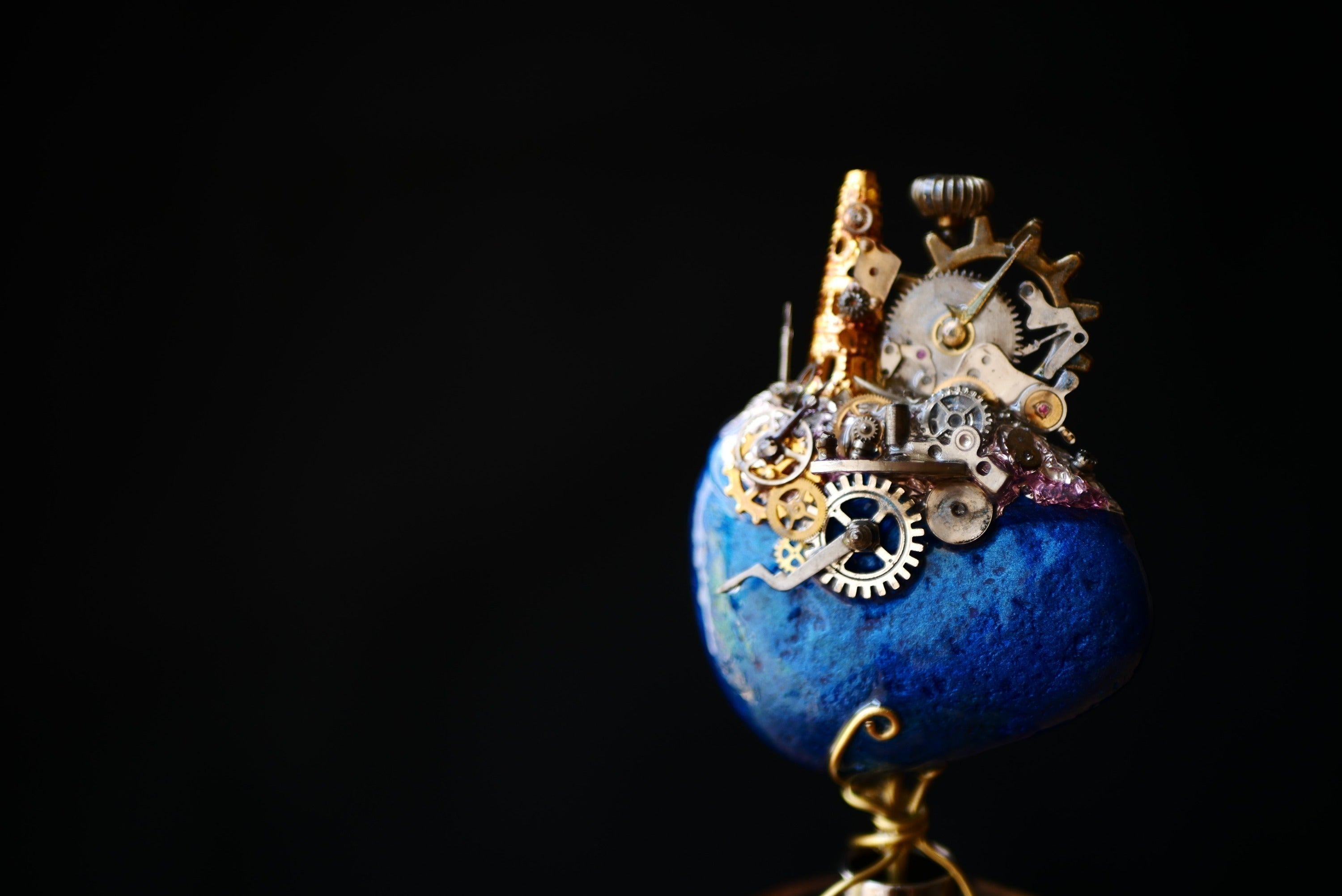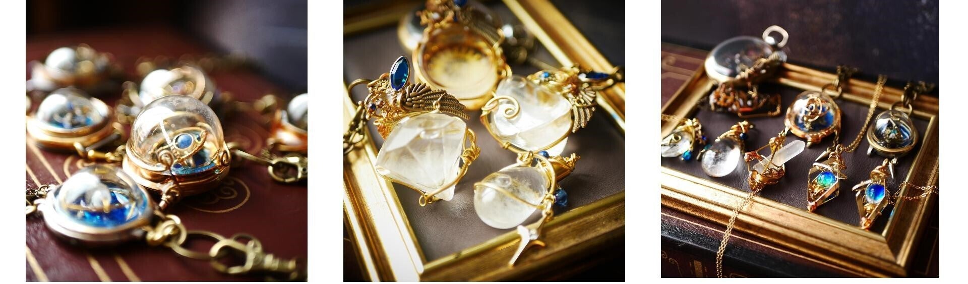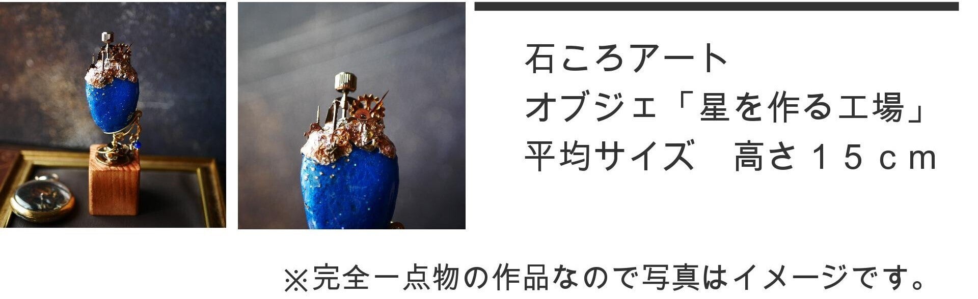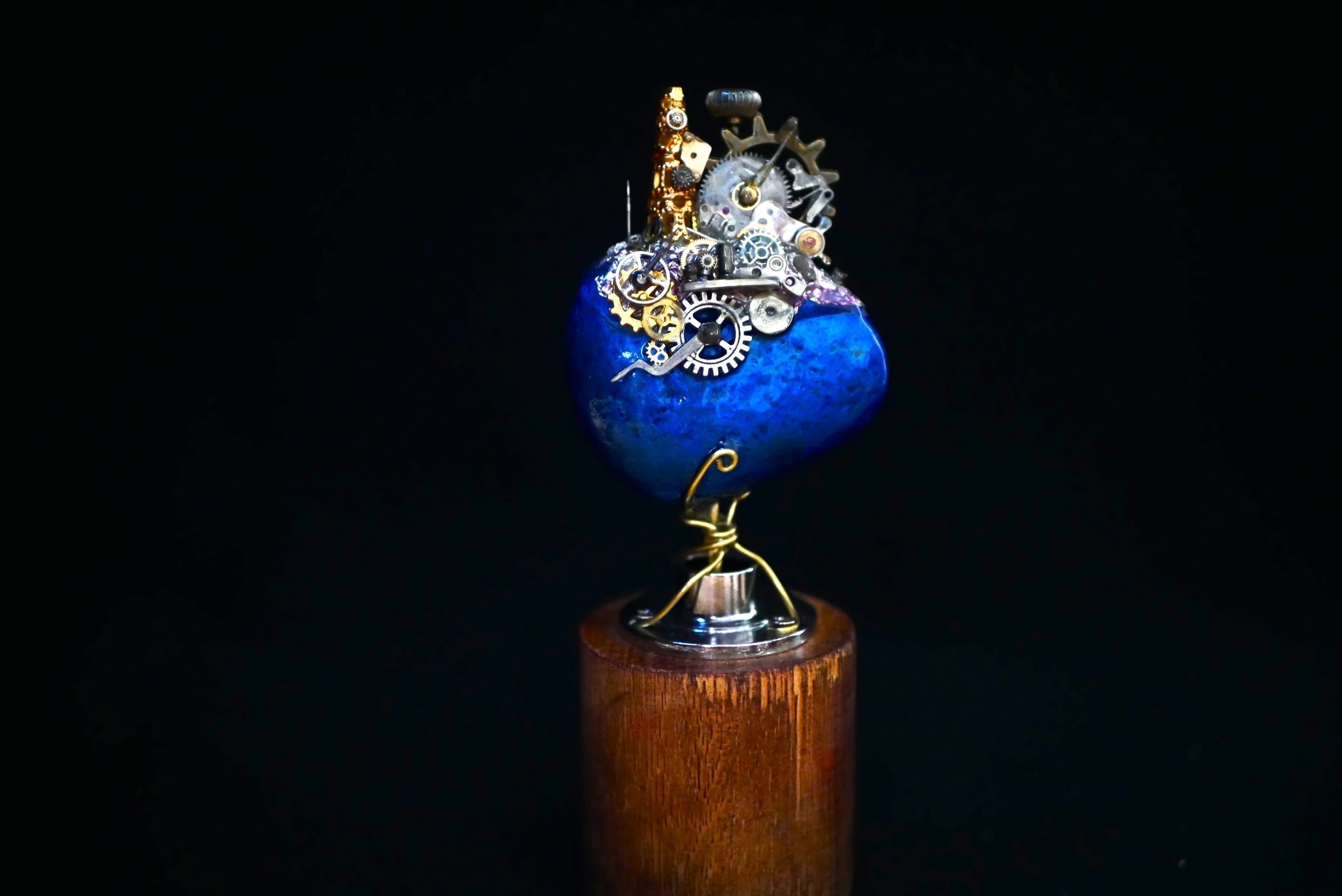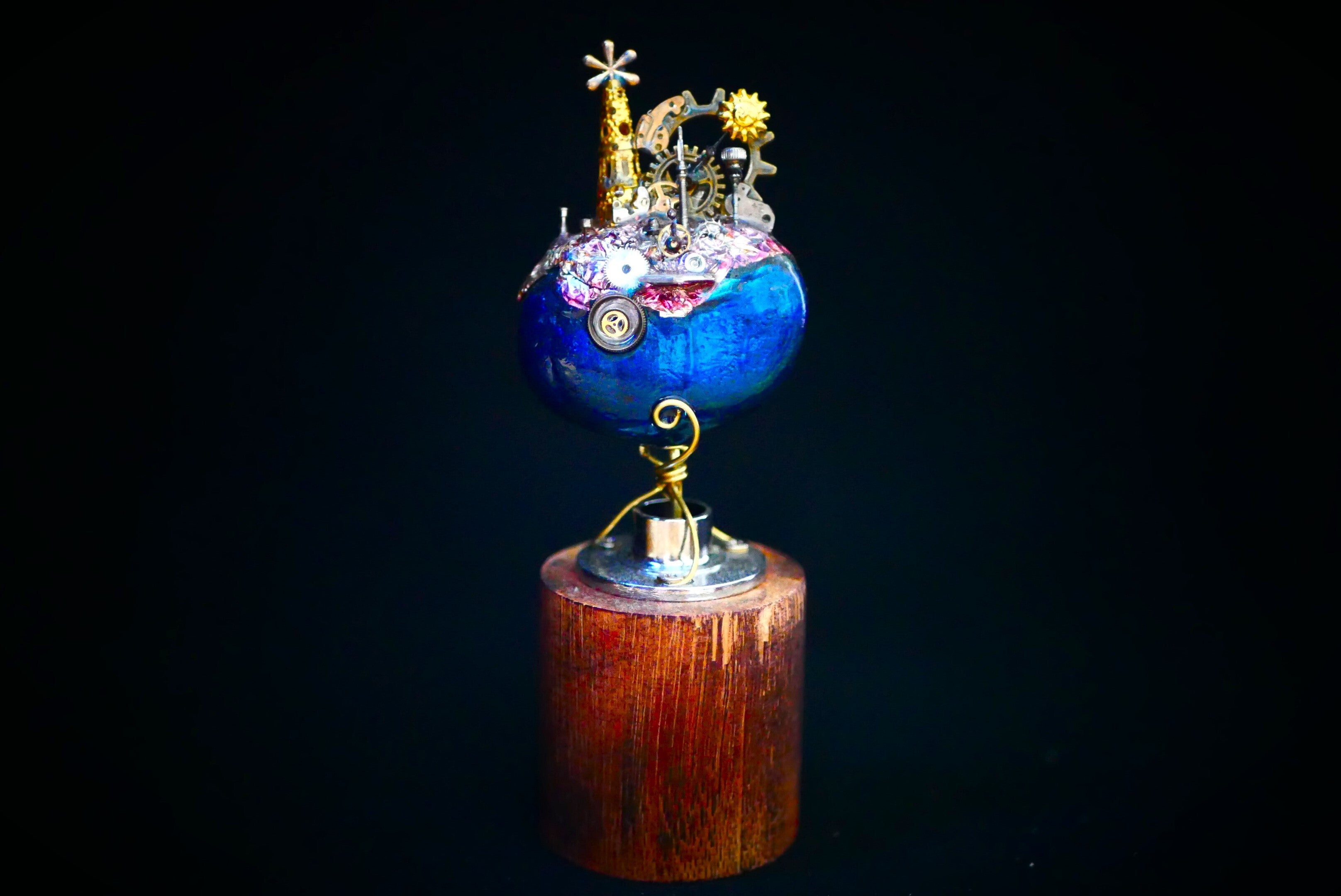主な資材:時計部品、鉱石、ガラス、真鍮線、レジンなど。