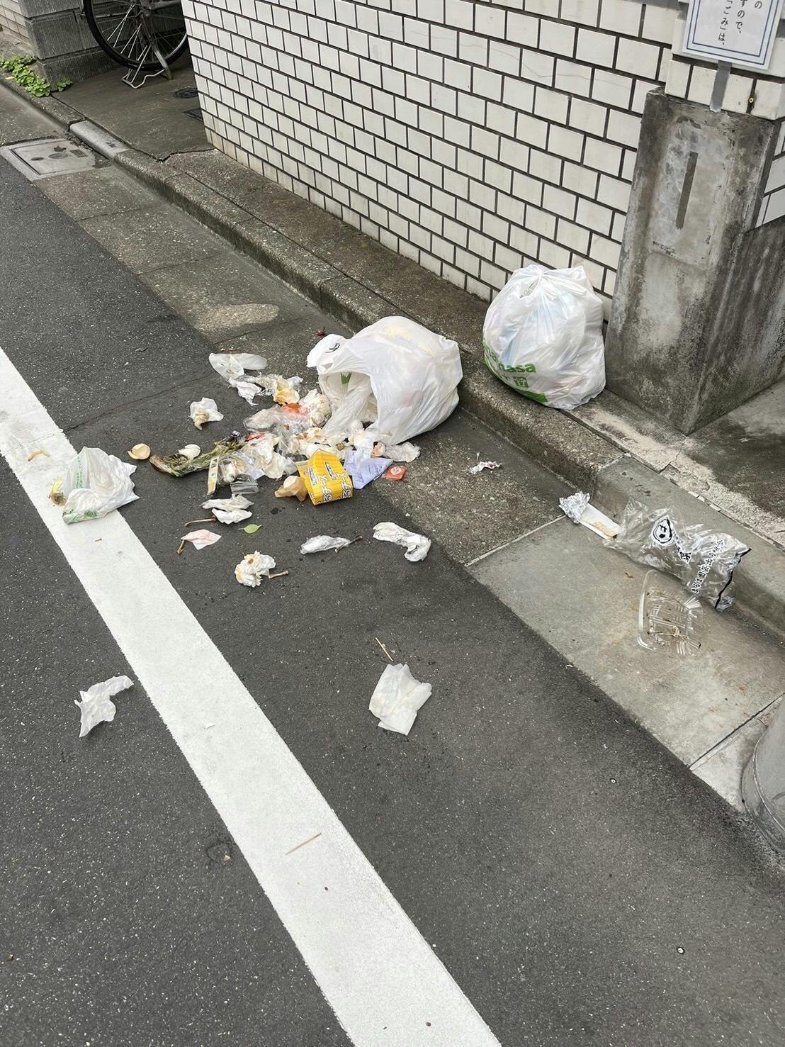 曜日、時間等のル-ルを守らない事にはよりカラスに荒らされてしまい、風に飛ばされ周囲に散らばるというものです。