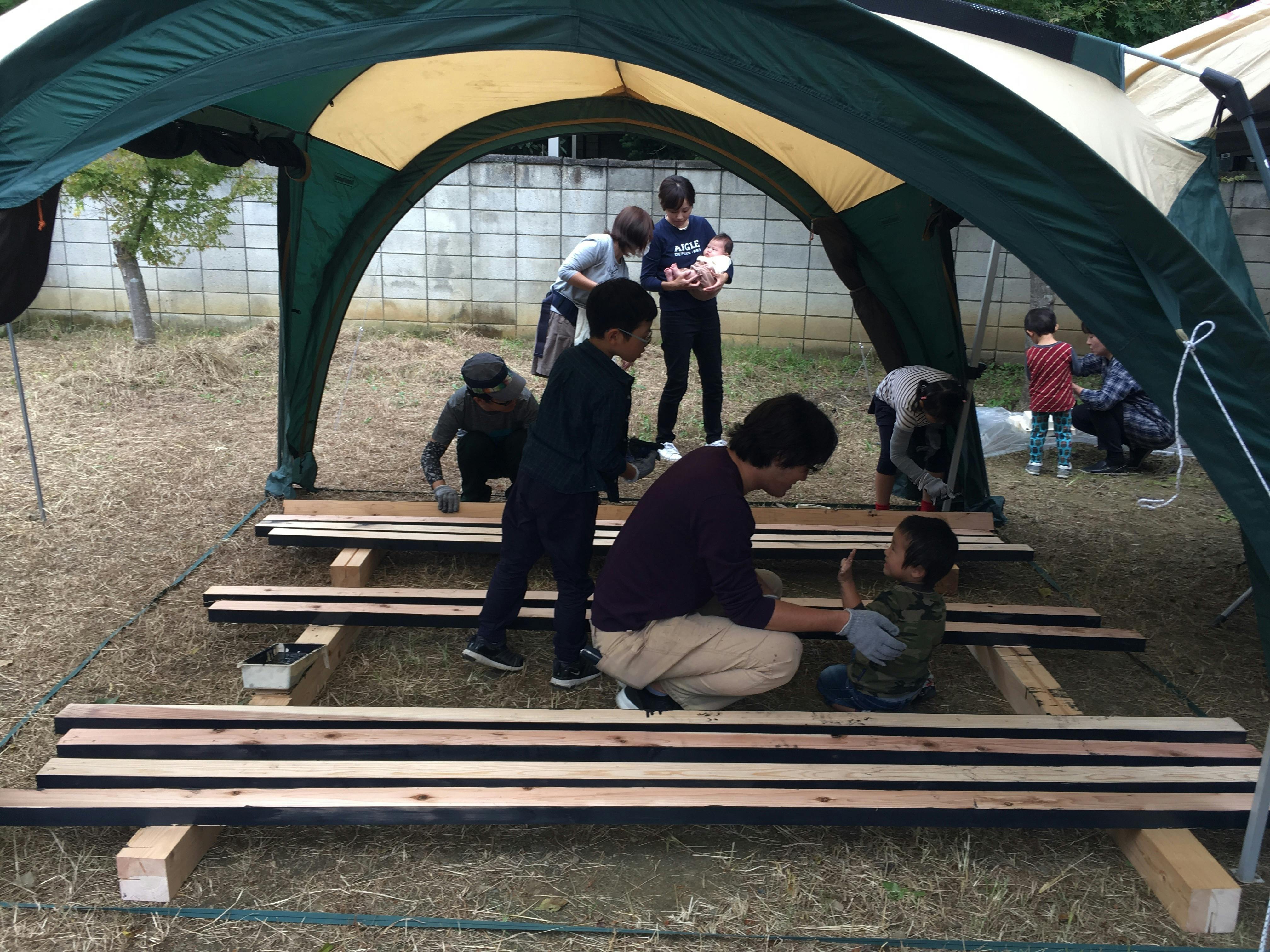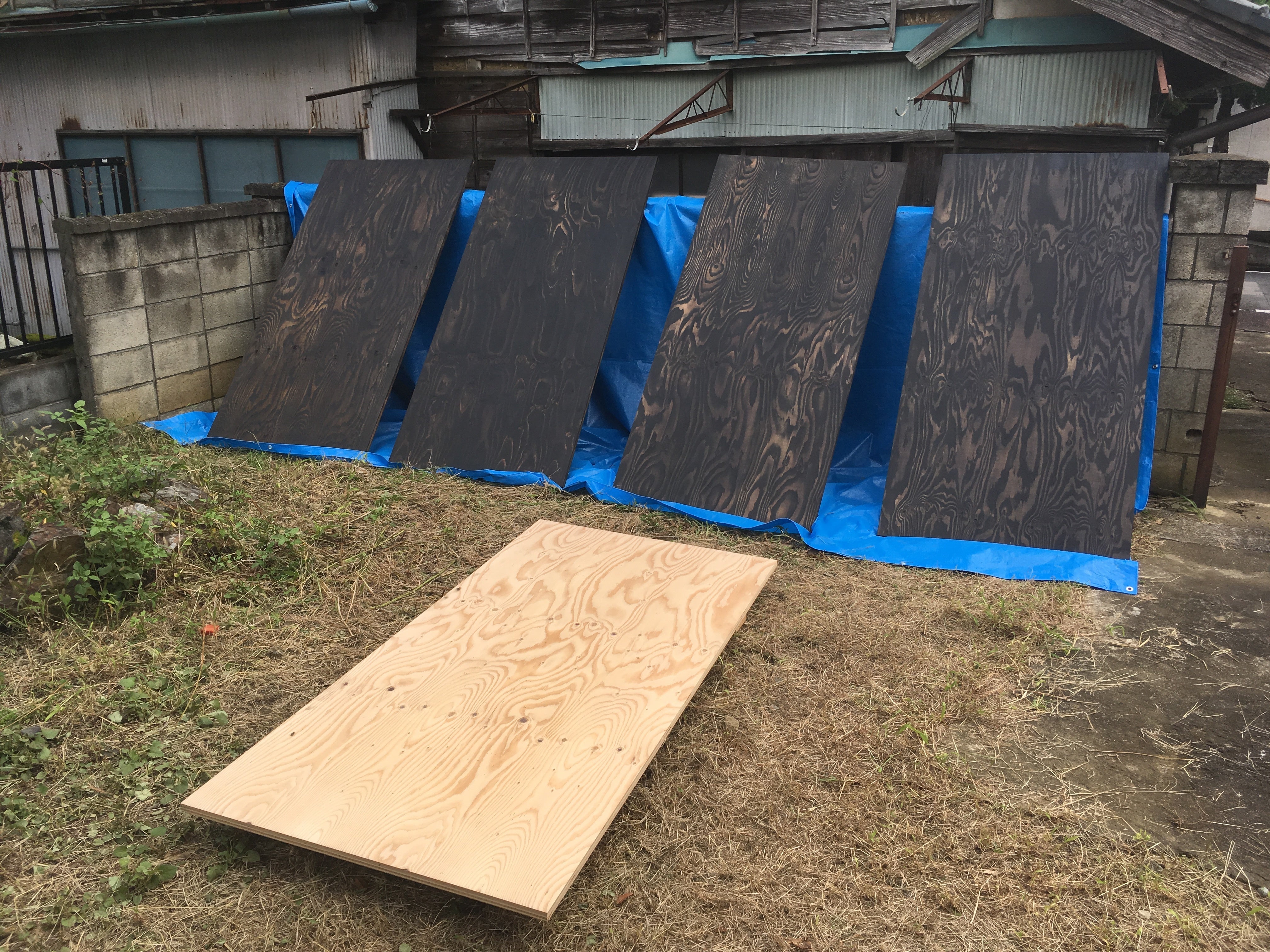 先日は天井に使う板をぬりぬり。いい感じに仕上がりました。