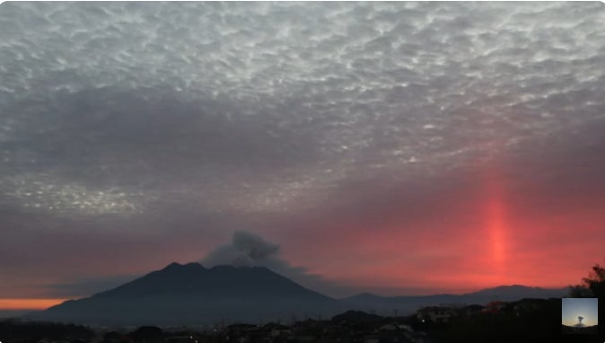 桜島越しの日の出や、ダイヤモンド桜島、珍しいサンピラー現象(⇩)なども見えますよ☆