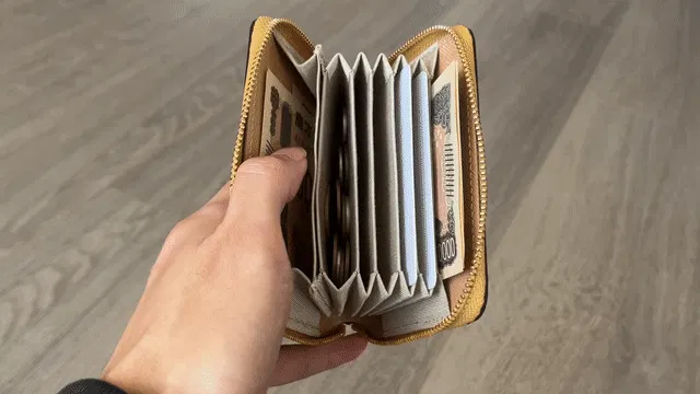 小さい財布だとお札を入れるのに苦労しませんか?三つ折りにしたり、収納に手間になることが多いですが、この財布は折らずにスッポリ入ります。