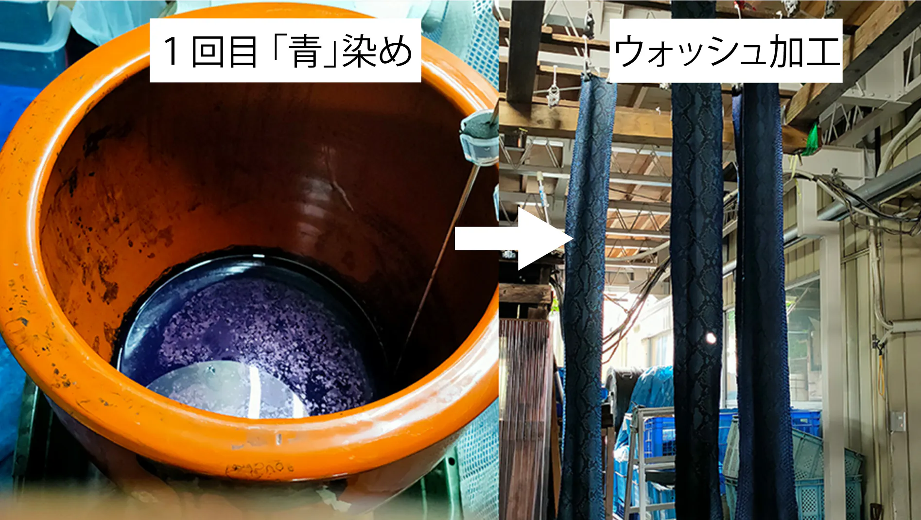 染色した後に、綺麗な色目が出るように、企業秘密で具体的にはいえませんが、何度も ウォッシュ加工をし渋い色を出すことに成功しました。