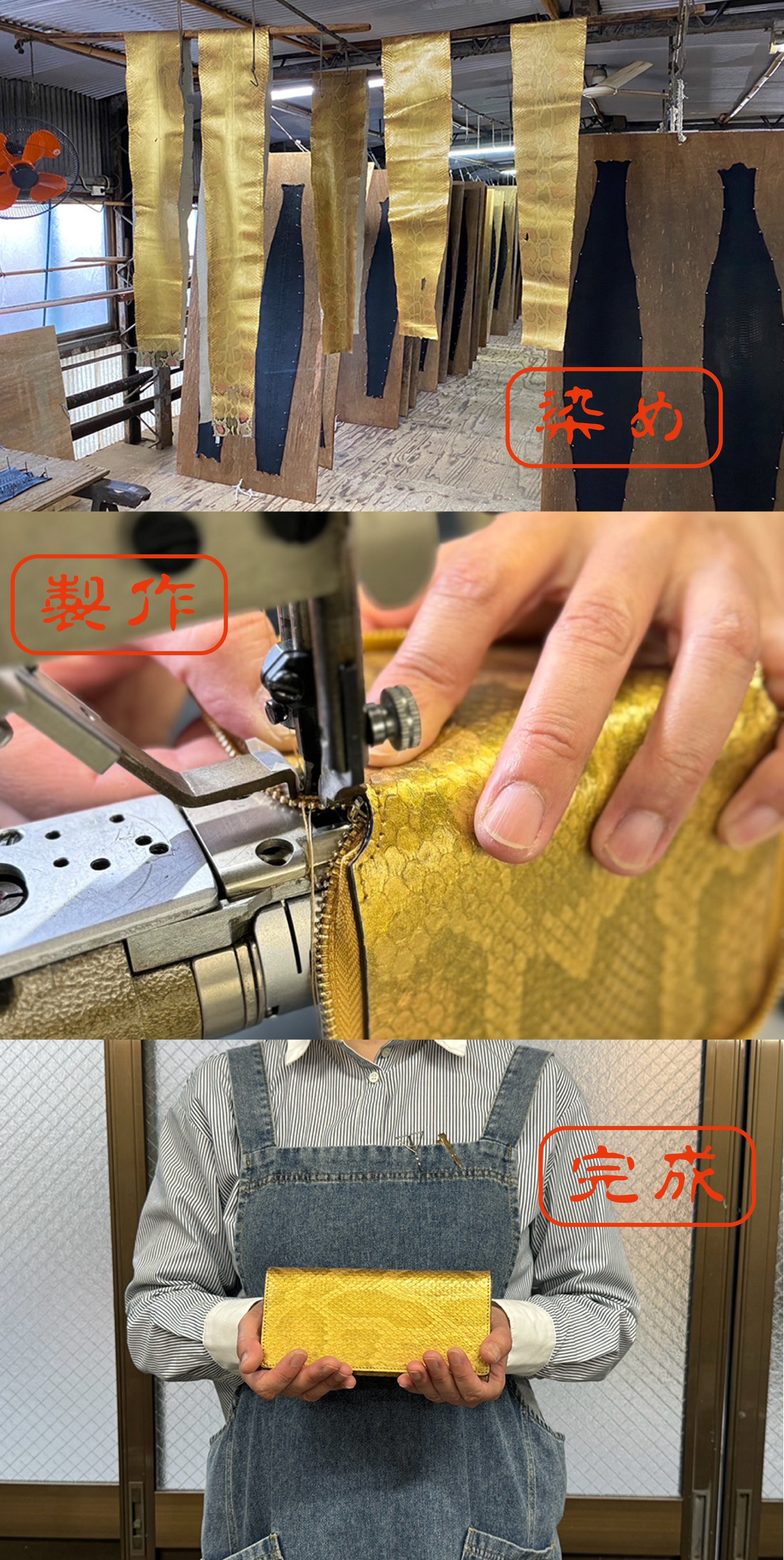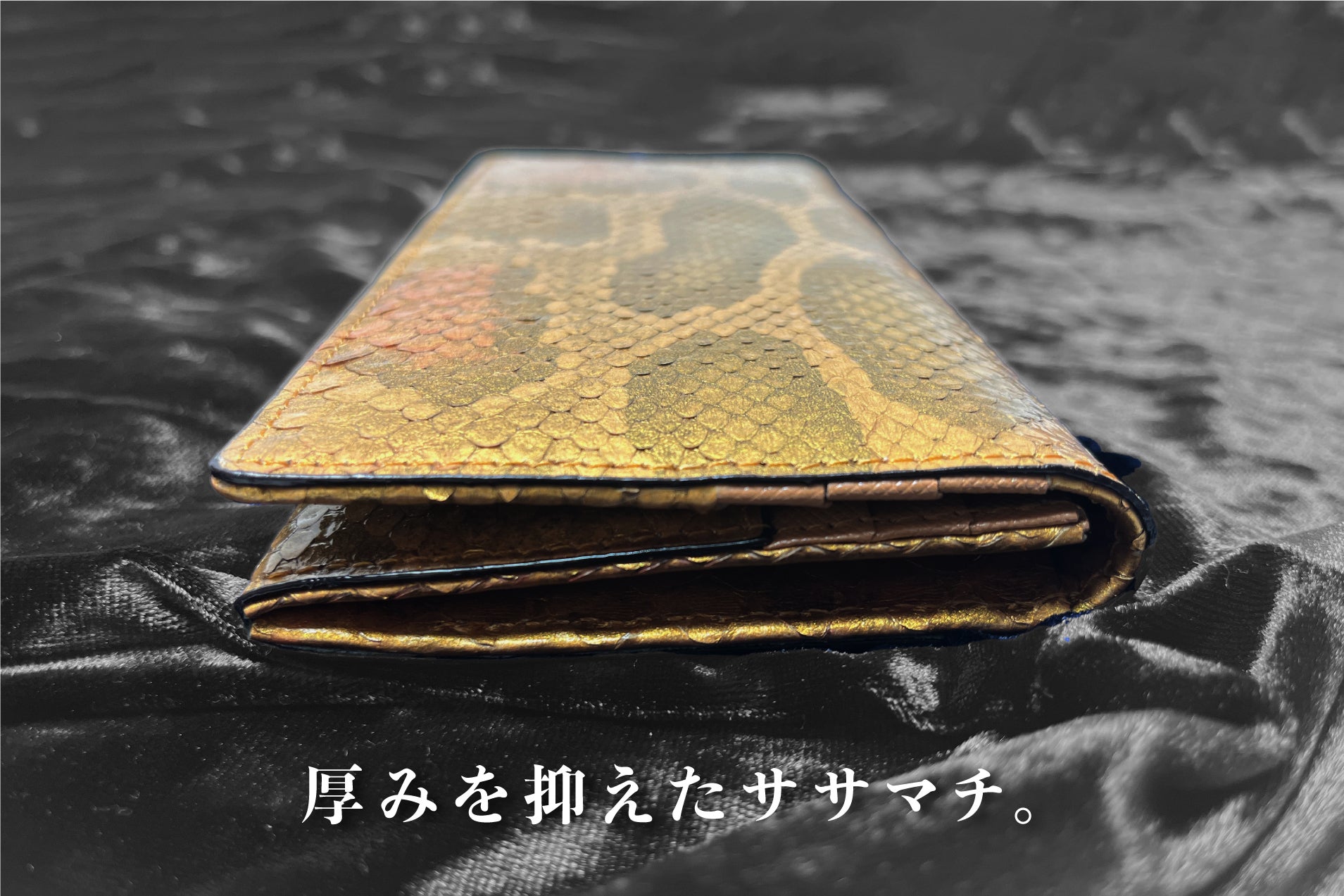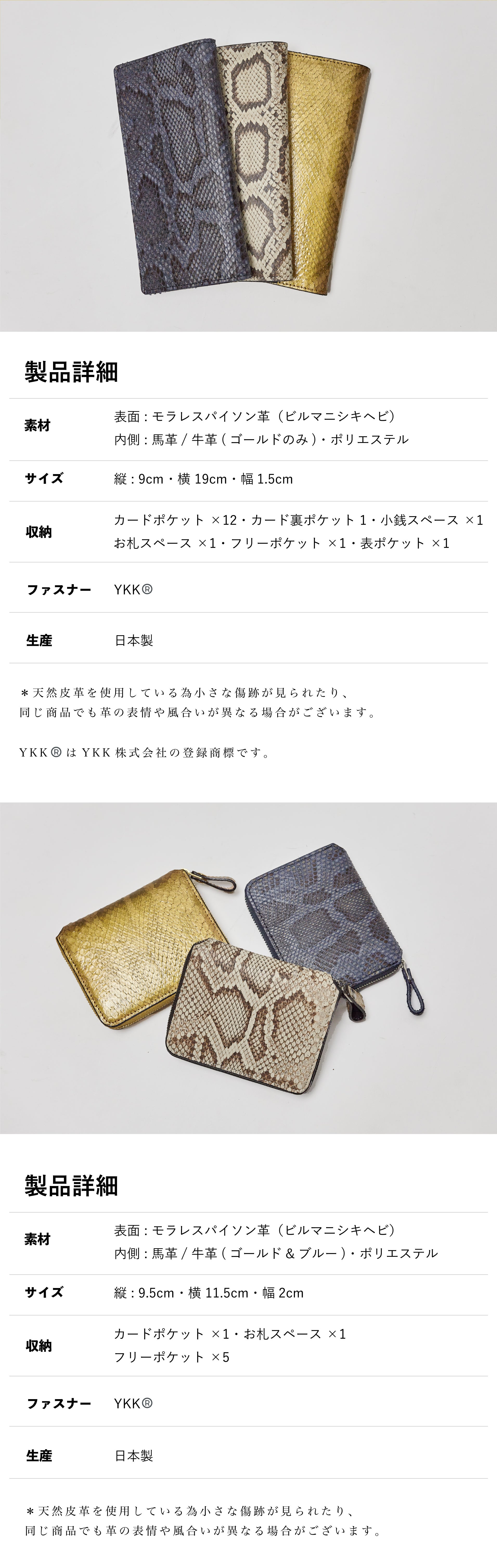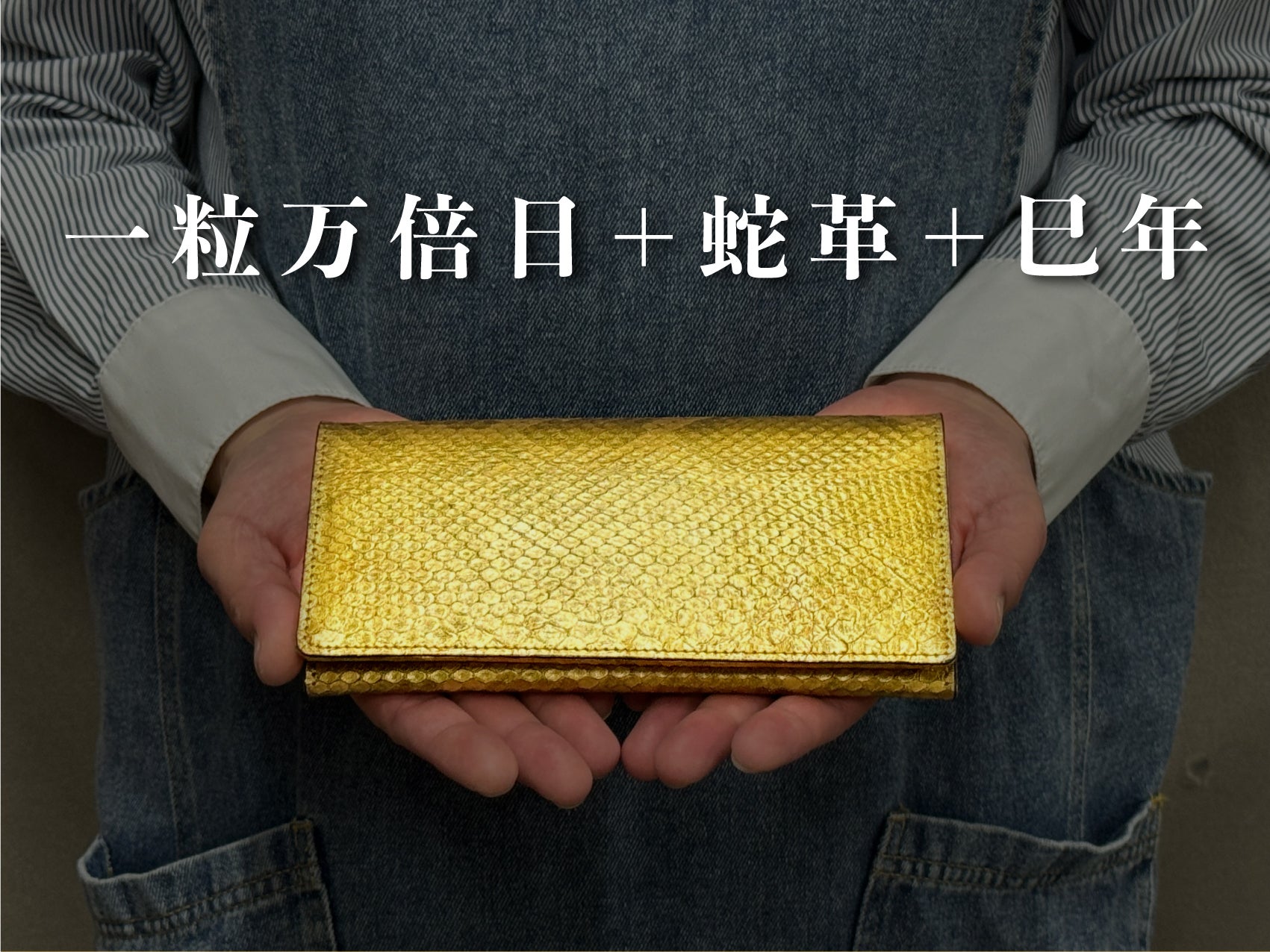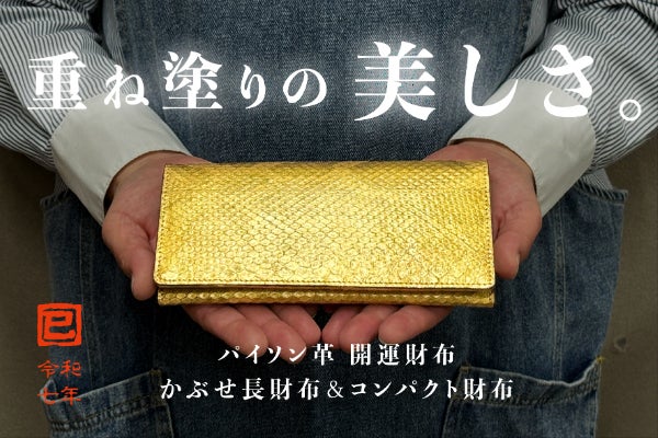 2025年は「巳年」です。パイソンは古来より金運アップの縁起物です。プラス「金色」に染め上げて更なる「金運UP」と「開運成就」を願って制作をいたしました。12年に一度しかできない思いを強く持ってお届けをいたします。
