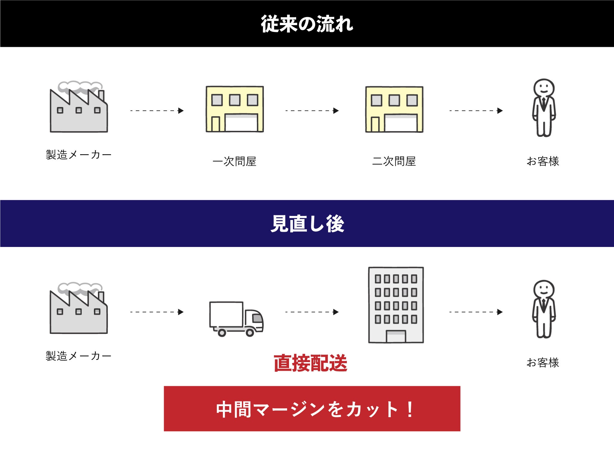 中間流通マージン、広告宣伝費、人件費を大幅カットしたからこそ実現できる販売価格です。