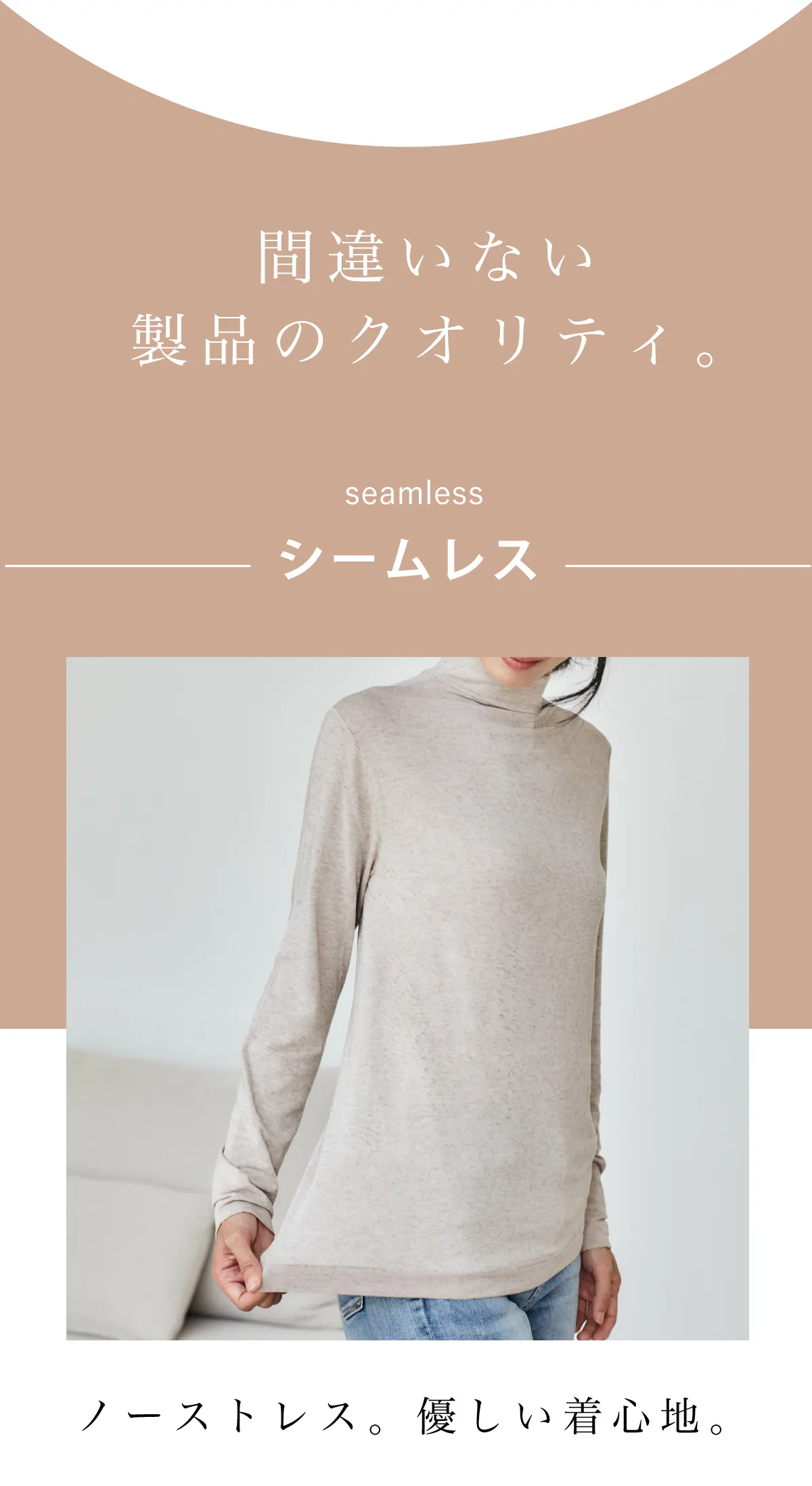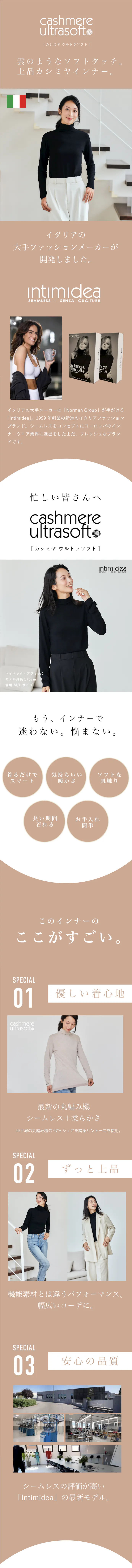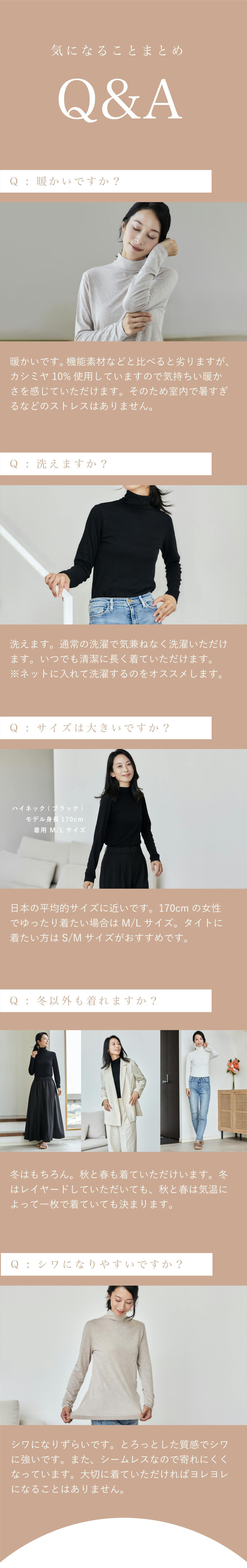 暖かい・冷たいなどの機能素材は品に欠けるので、お出かけや一枚で着たい時には難しい。。機能素材とは違い上質なインナーに仕上がりました。どこに来て行っても恥ずかしくないインナーです。