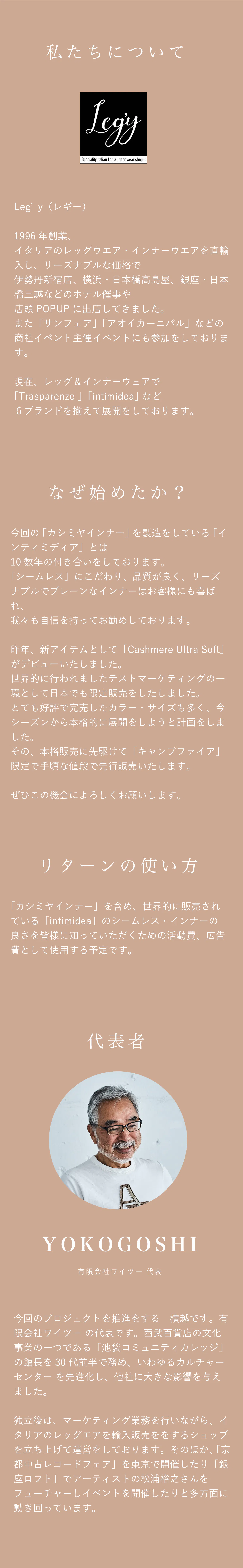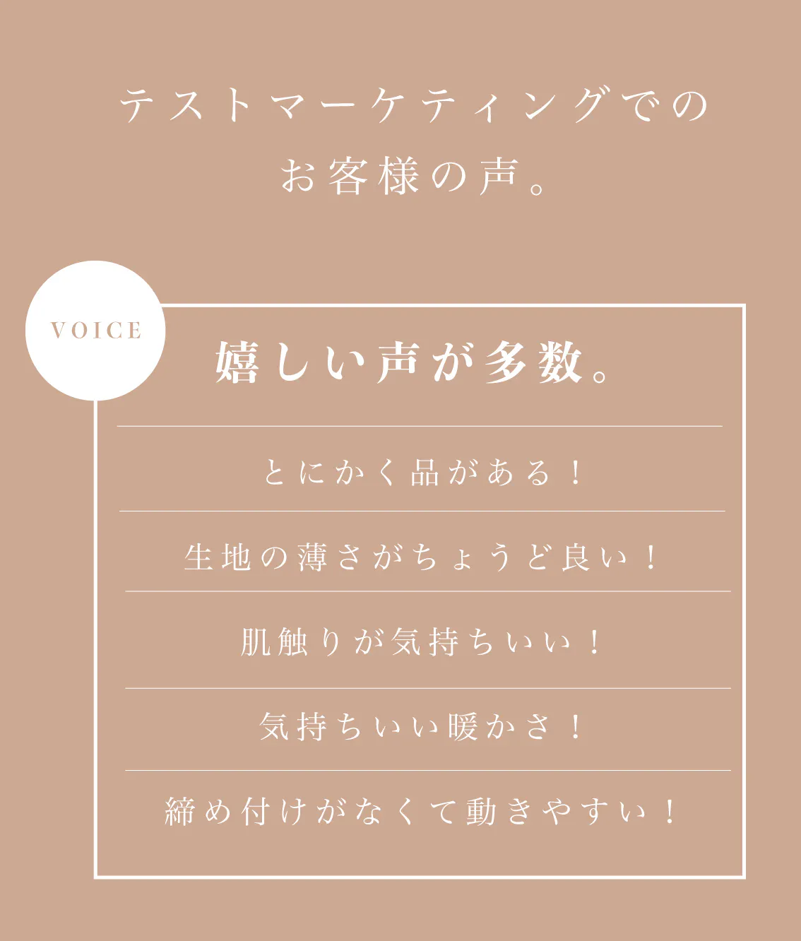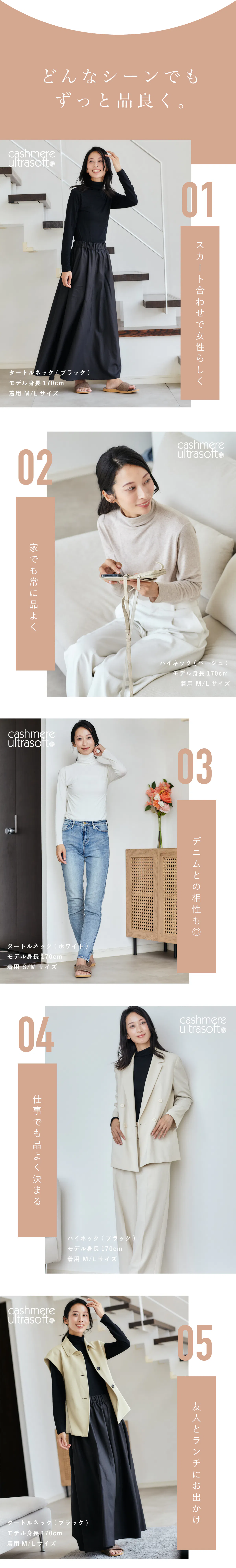 暖かい・冷たいなどの機能素材は品に欠けるので、お出かけや一枚で着たい時には難しい。。機能素材とは違い上質なインナーに仕上がりました。どこに来て行っても恥ずかしくないインナーです。