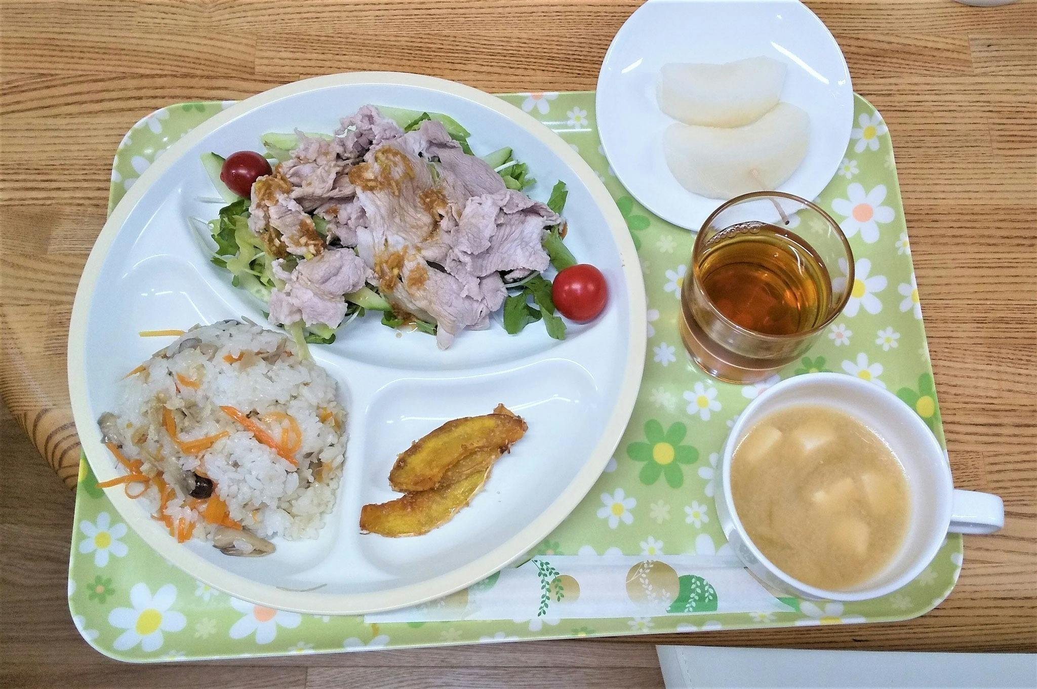 メニューは、日替わり夜ご飯定食、お菓子