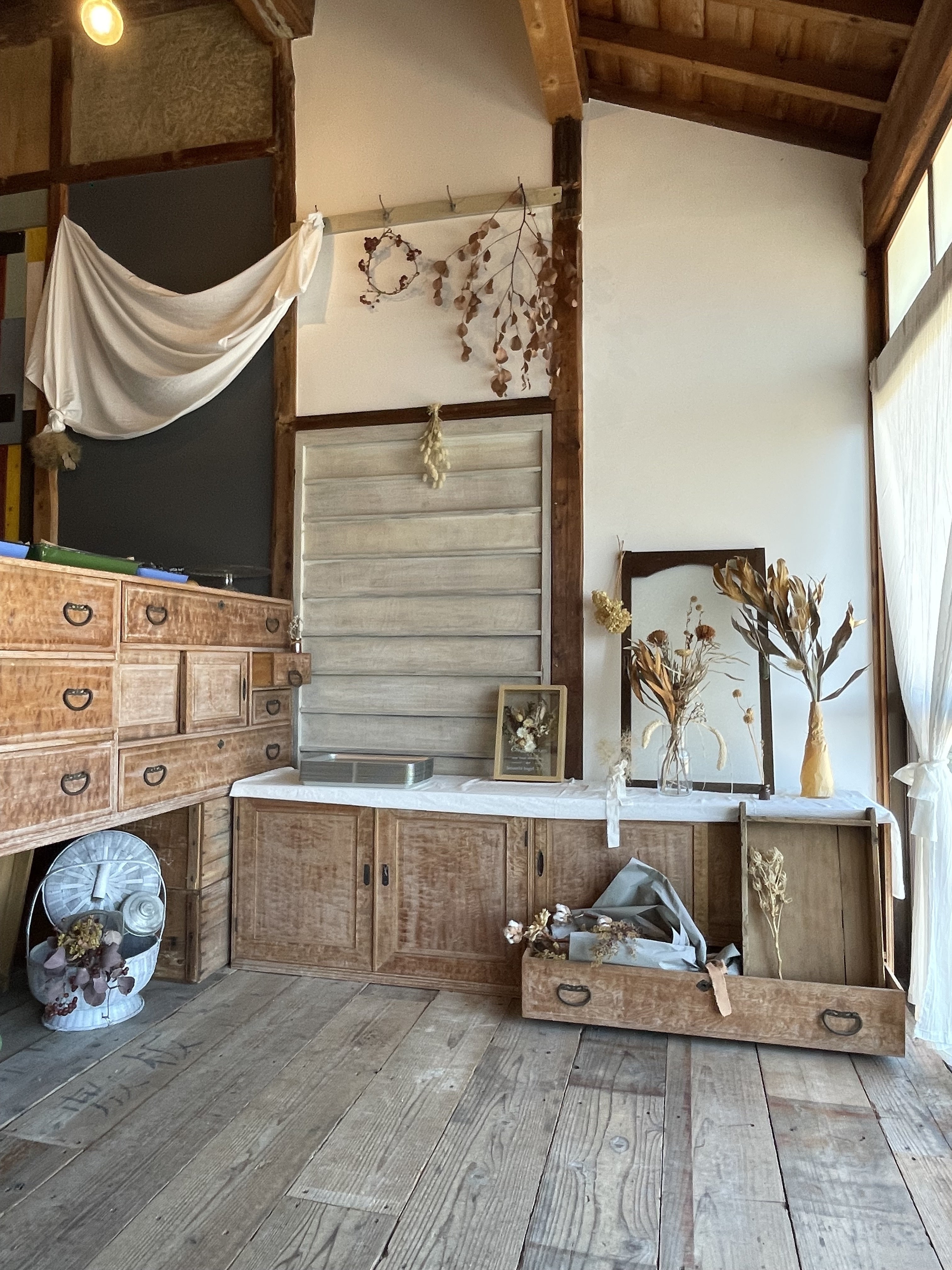 店内には、古民家に残されていた今では貴重な物をディスプレイに使用しており、全てを新しくするのではなく、古民家の良さを残しています!