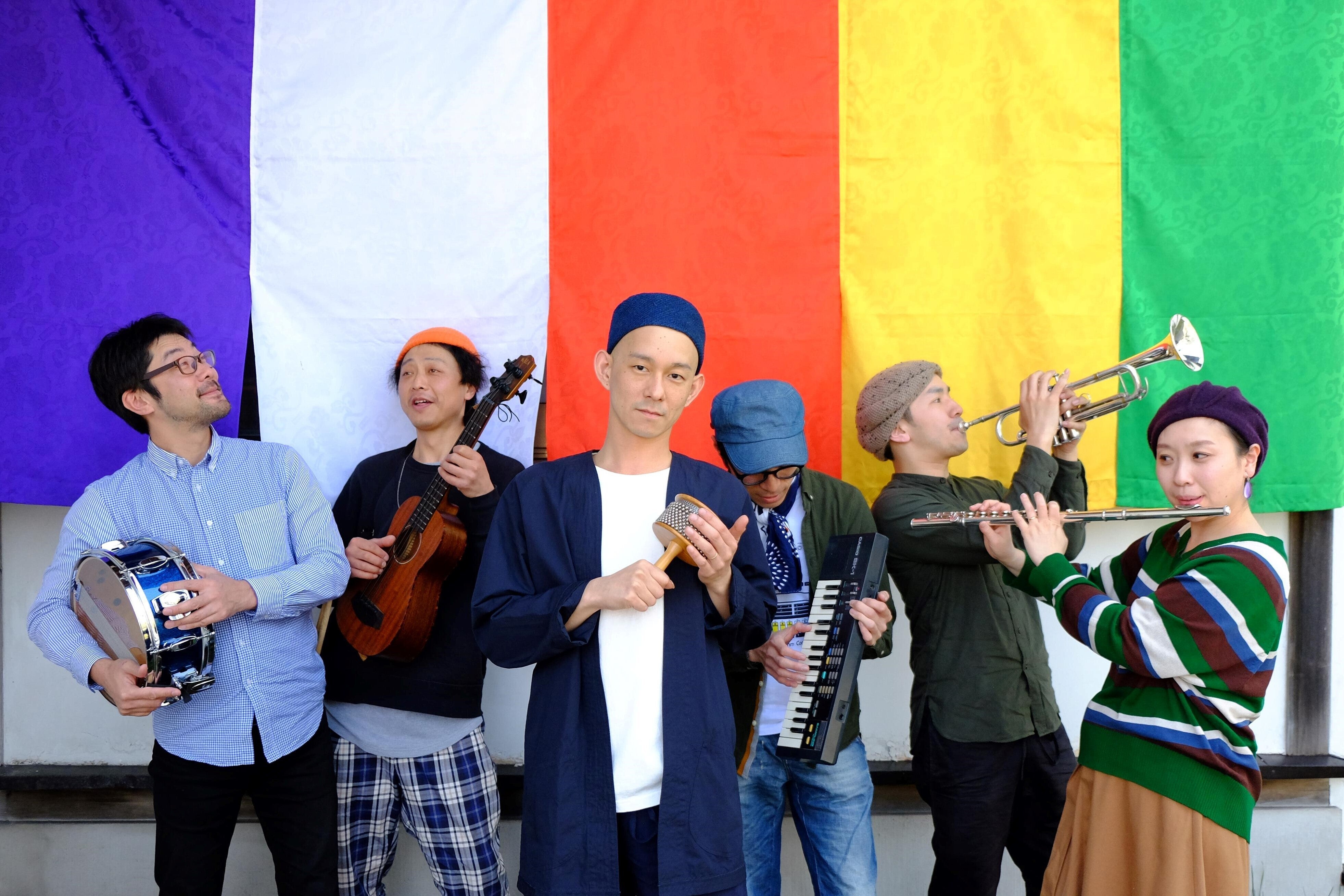 当フェスではおなじみ、「英心 & The Meditationalies」のご紹介!英心 Vo,Gt,Perc 諸越 俊玲 Dr,Tb加藤 禎哉 Baいしま Fl,鍵盤ハーモニカ鈴木 雄大 Tp,key 南米での音楽修行、仏道修行を終えて帰国した僧侶音楽家・英心を中心に秋田県在住のミュージシャンが集まり2014年に結成。レゲエやラテン、サンバを軸に仏教的世界観を匂わせた歌詞をのせる独特のスタイル。代表曲「秋田濃厚民族」が、秋田定住PRソングとしてニュース番組に取り上げられるなど、様々なメディアで話題を呼ぶ。2015年7月にはファーストアルバム『からっぽ』を発表し、秋田・東京で行われたリリースパーティはいずれもソールドアウト。また、本作品は『ミュージックマガジン』2016年1月号にて、年間ベストアルバム2015レゲエ[日本]部門で第1位を獲得。2ndアルバム『過疎地の出来事』 リリース。秋田県内外でのライブや、テレビCMへの楽曲提供、ナレーションの担当など、活動は多岐に渡る。昨年のLIVEからラテンにサンバ、ときどき秋田弁混じりのGROOVEは夏の青空にピッタリ!今年も英心Worldでお楽しみください!