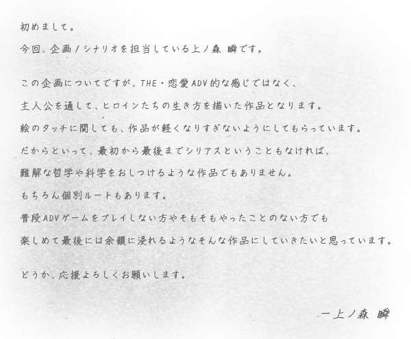 ジャンル:生と死と愛に向き合い自分の居場所を求め戦い続ける彼女たちを描くADV
