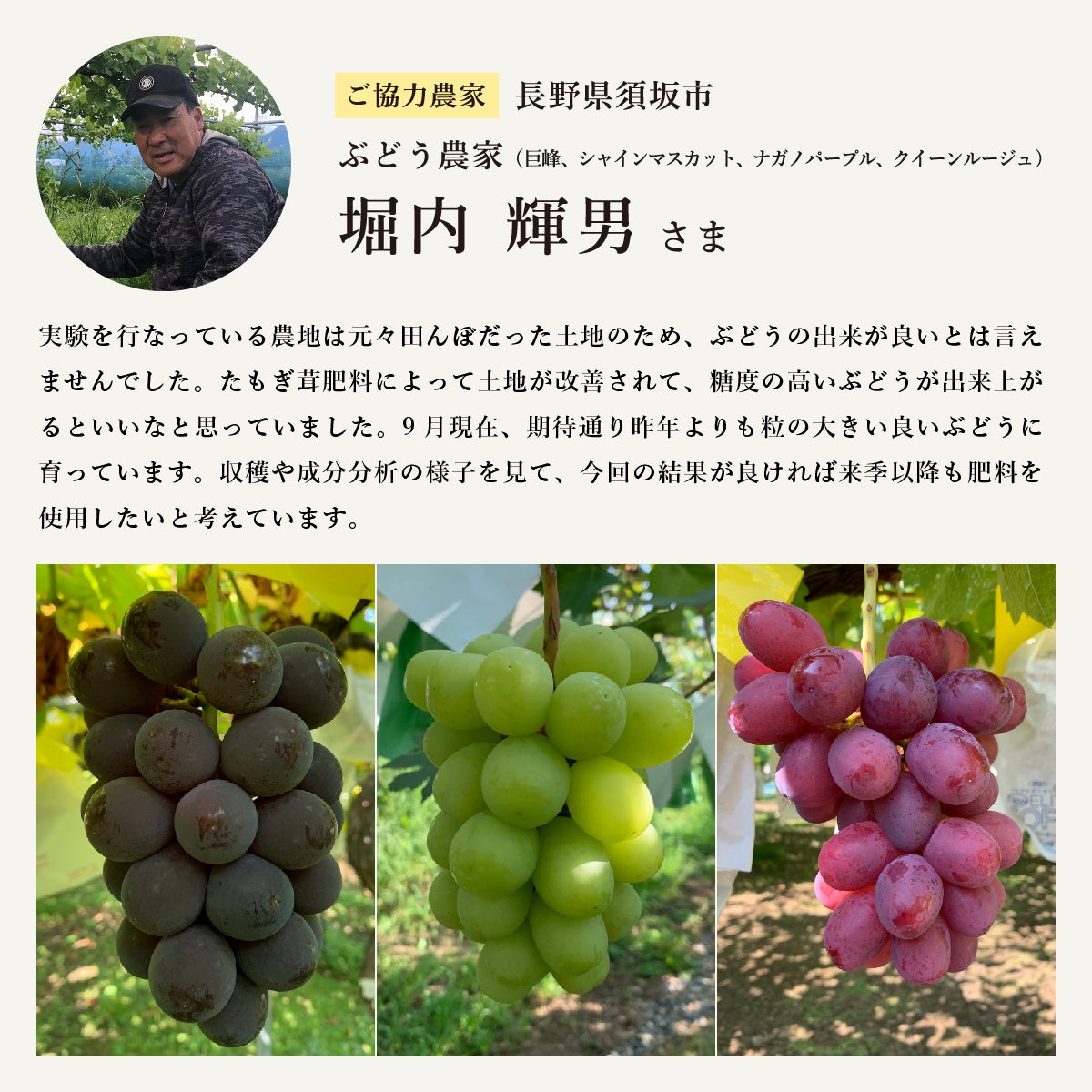 実験にご協力いただける農家さまを探すなかで、ぶどう農家さまだけでなく、実験結果に興味を持ってくださった他の農産物を扱う方々にもご協力いただけることになったのです。