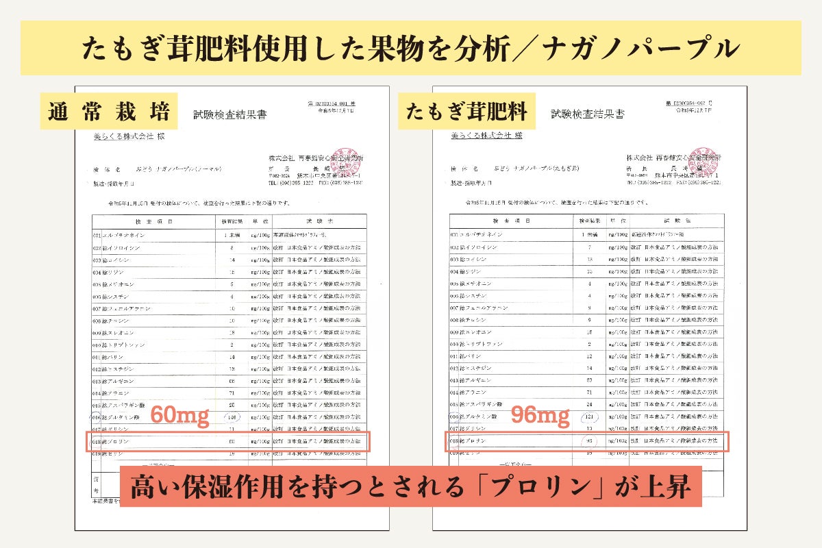 すでに収穫を完了・行なっている農産物の糖度を測ってみたところ、2024年も優位な結果を得られています。精緻な分析はこれからではありますが、たもぎ茸の肥料化へ更に期待が高まっています。