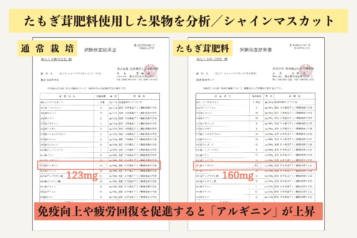 シャインマスカットには成長ホルモンの分泌を促して免疫力の向上や疲労回復を促進するとされる「アルギニン」が通常より多く含まれていたのです。