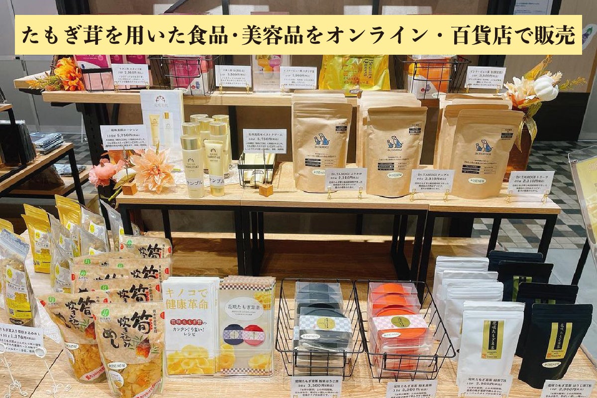 私と同じような悩みを抱えている方々にも、たもぎ茸を生活に取り入れていただきたい。そうした思いから、たもぎ茸の栽培業者さまと代理店契約を結び、たもぎ茸の加工品や美容アイテムの販売を開始しました。