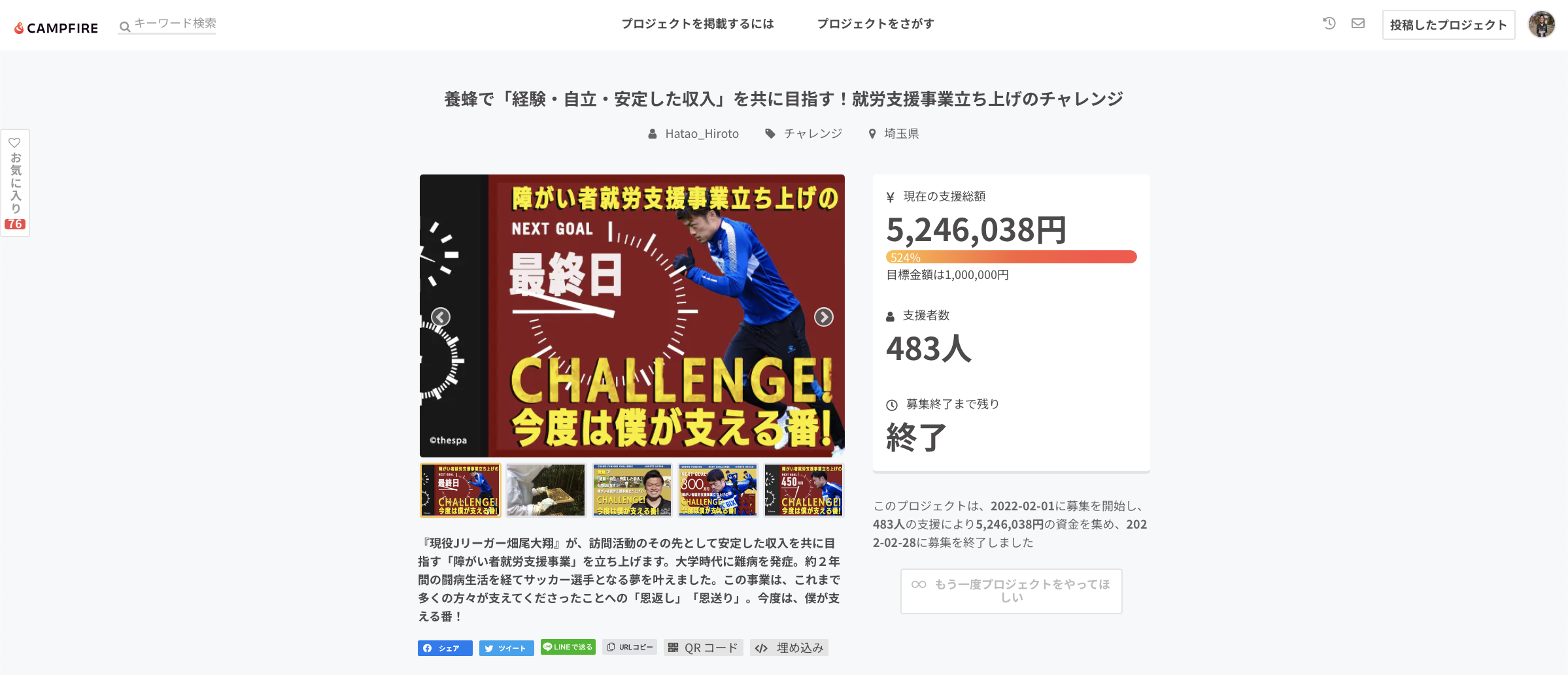 プロジェクト成功・達成のためにご支援をよろしくお願いいたします。