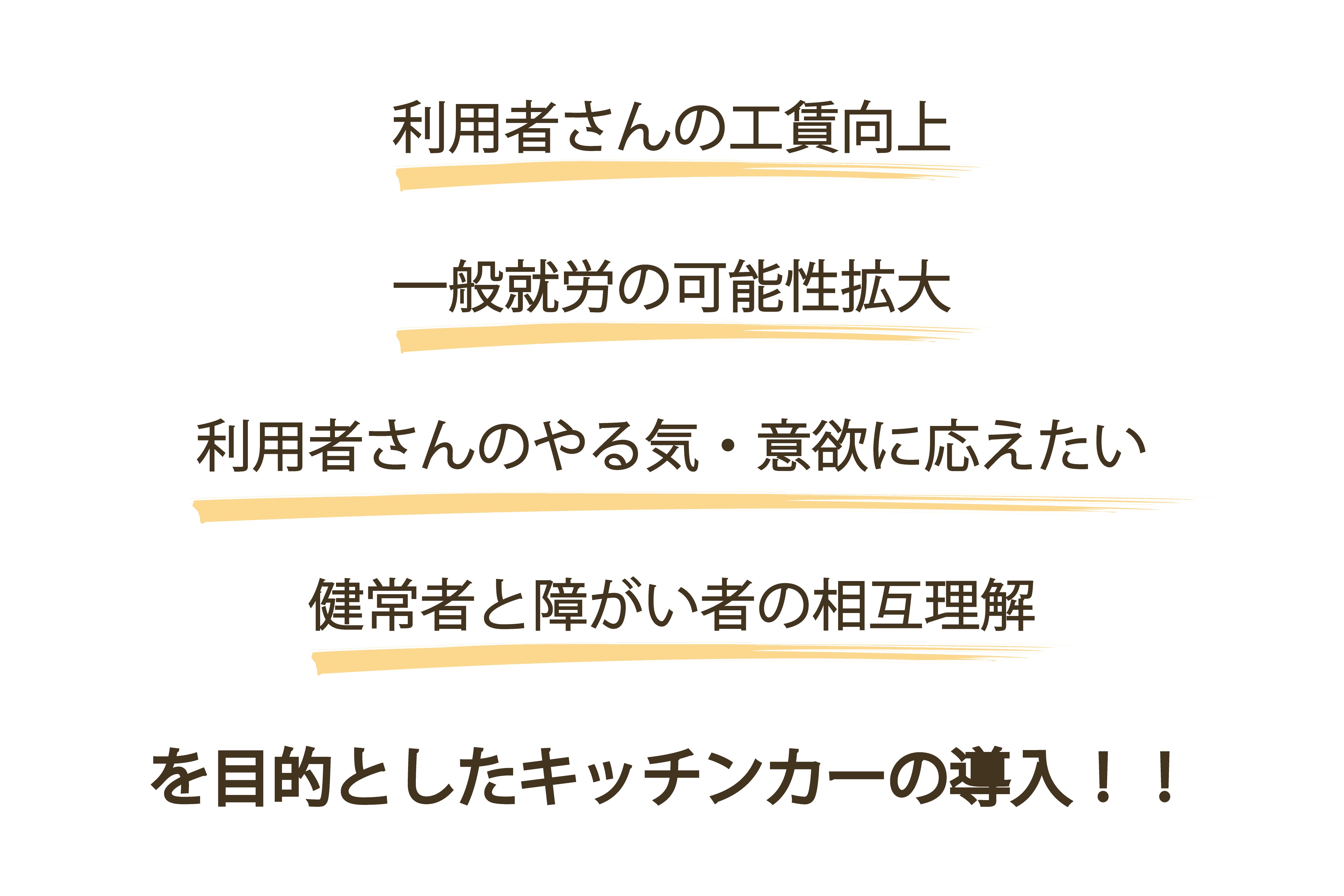 そう思い、まずはキッチンカー導入を決断するに至りました。利用者さんの視点では、接客業への一般就労がイメージしやすくなるでしょうし、受け入れていただく企業の方に対しても”接客業経験者”として安心してお受けいただけるのではないかと思います。