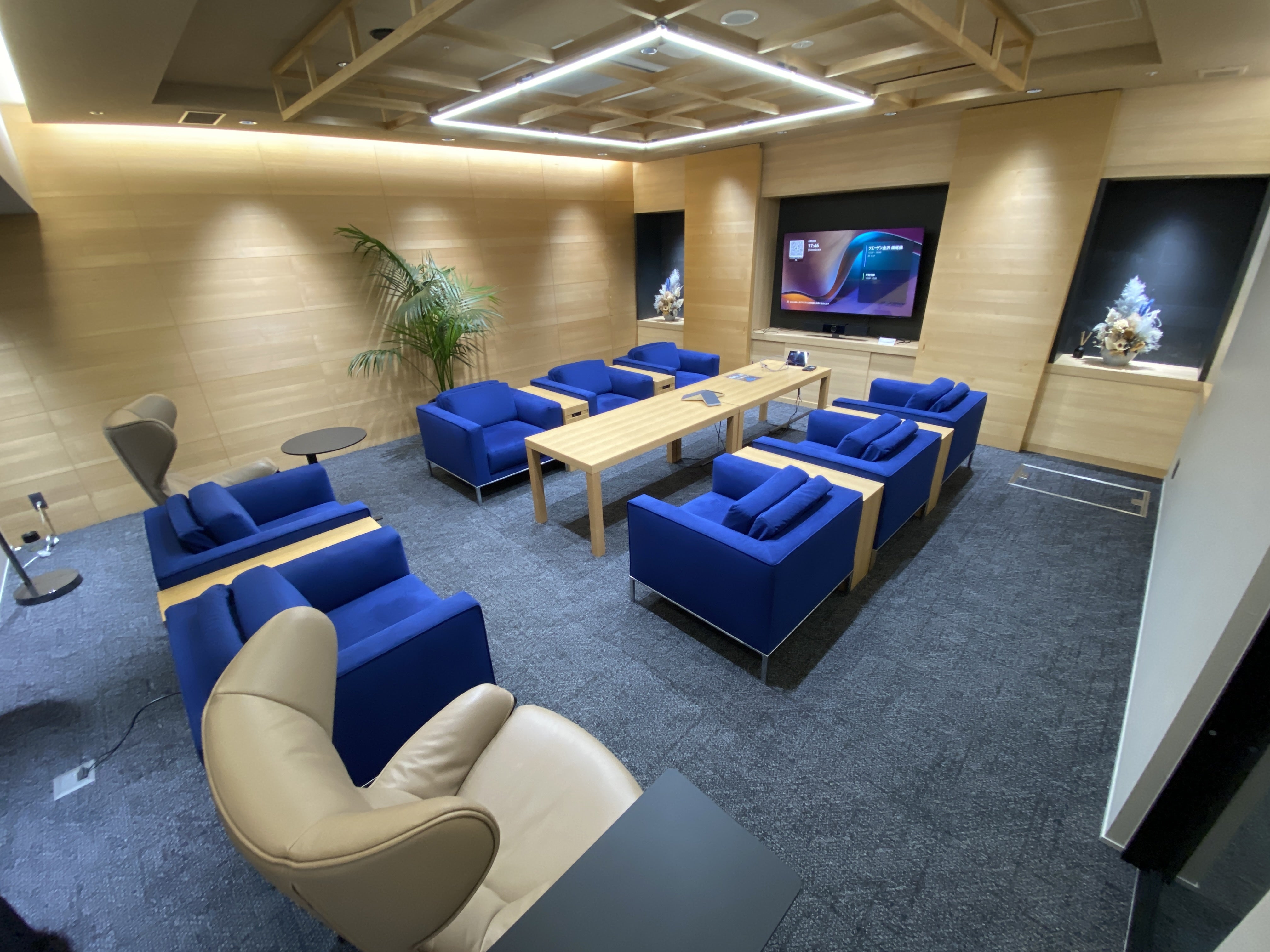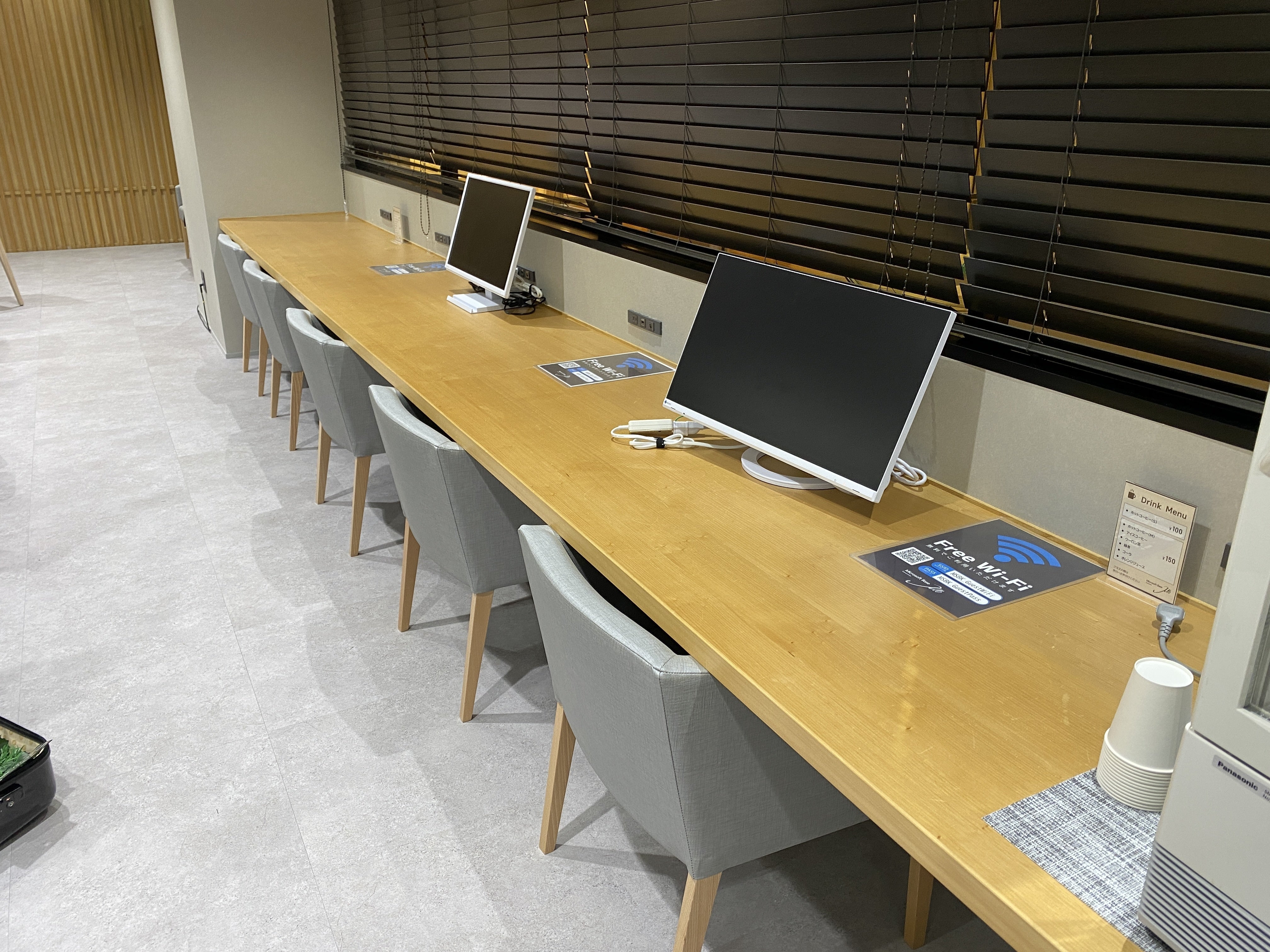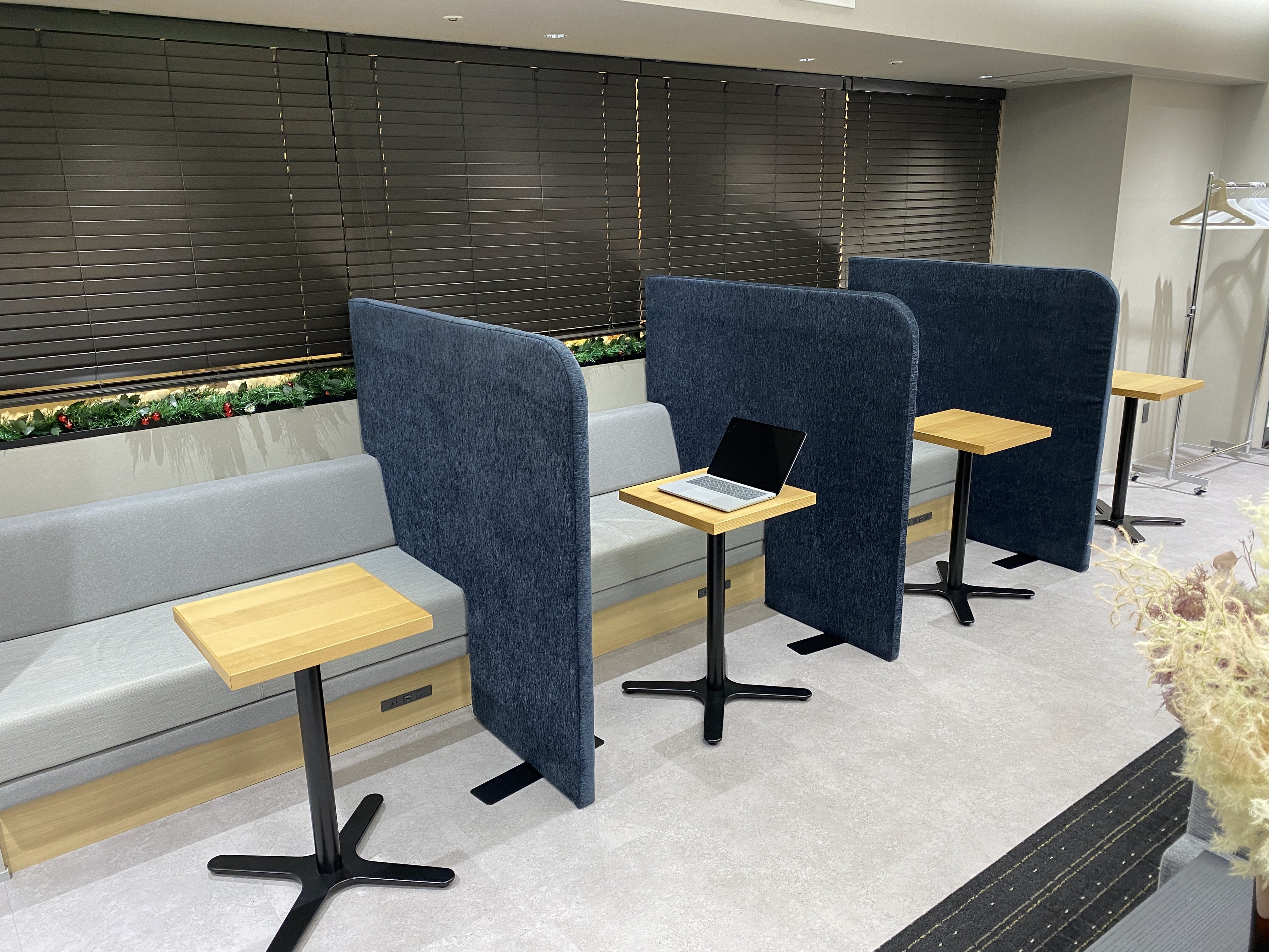 オープンラウンジや個室スペースも完備されており、コワーキングスペースとして利用可能です。(100円/15分)