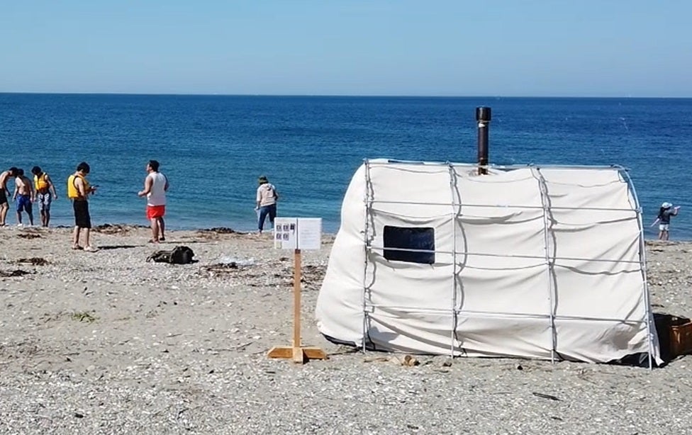 ・五右衛門風呂、固定テント、サウナの設置(住民による作業)