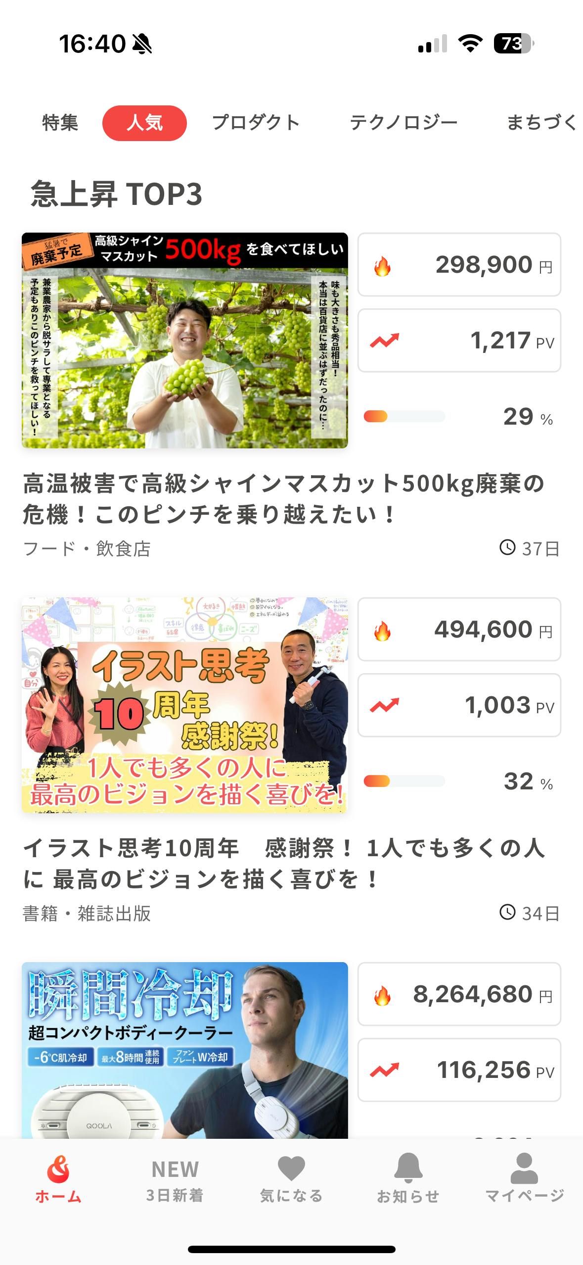 そして、CAMPFIREサイト内で急上昇1位に選ばれました!!