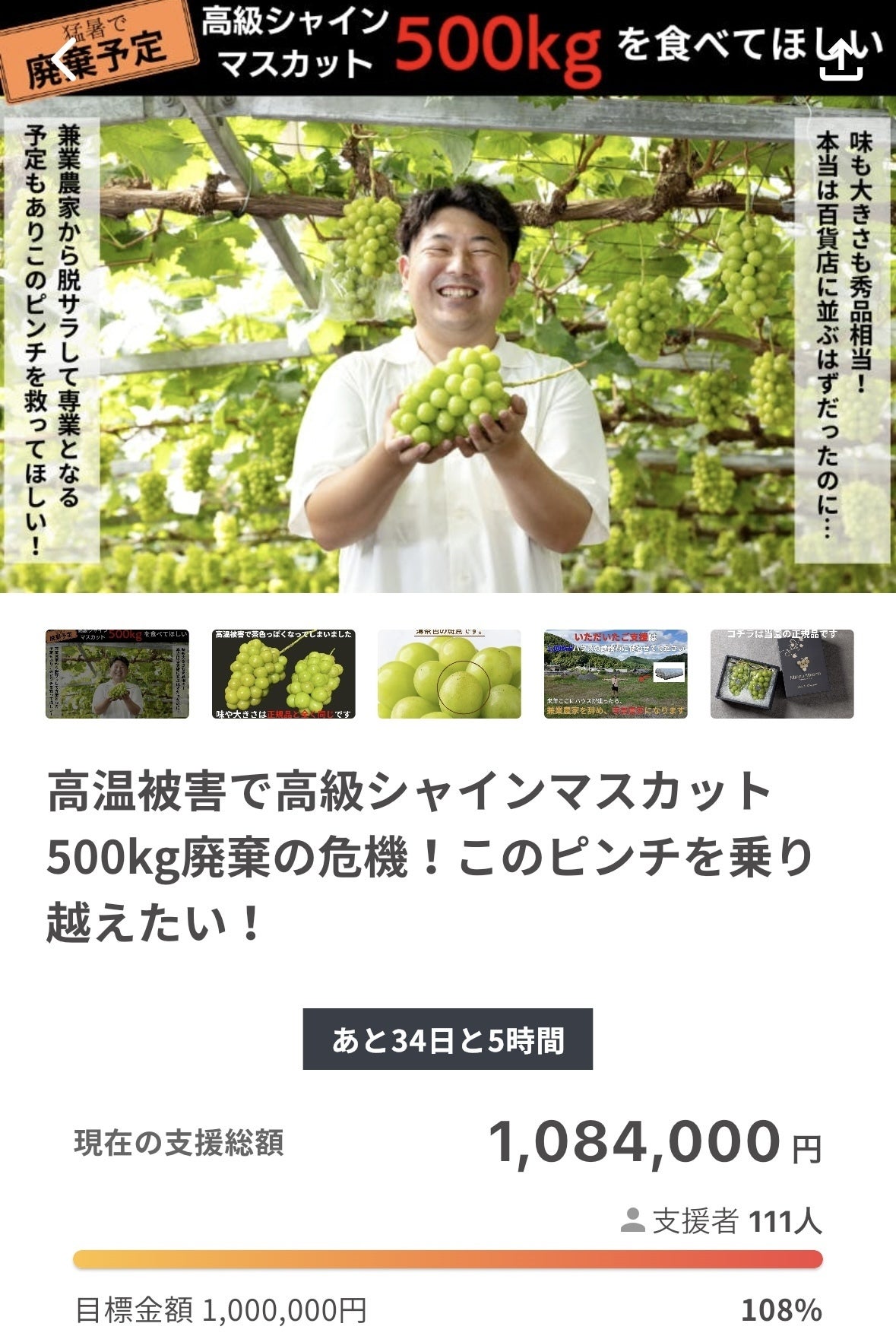そのため、もう250kg分のシャインマスカットと、さらには正規品である”MiiinoMuscat”のご支援を賜りたいと思っています!