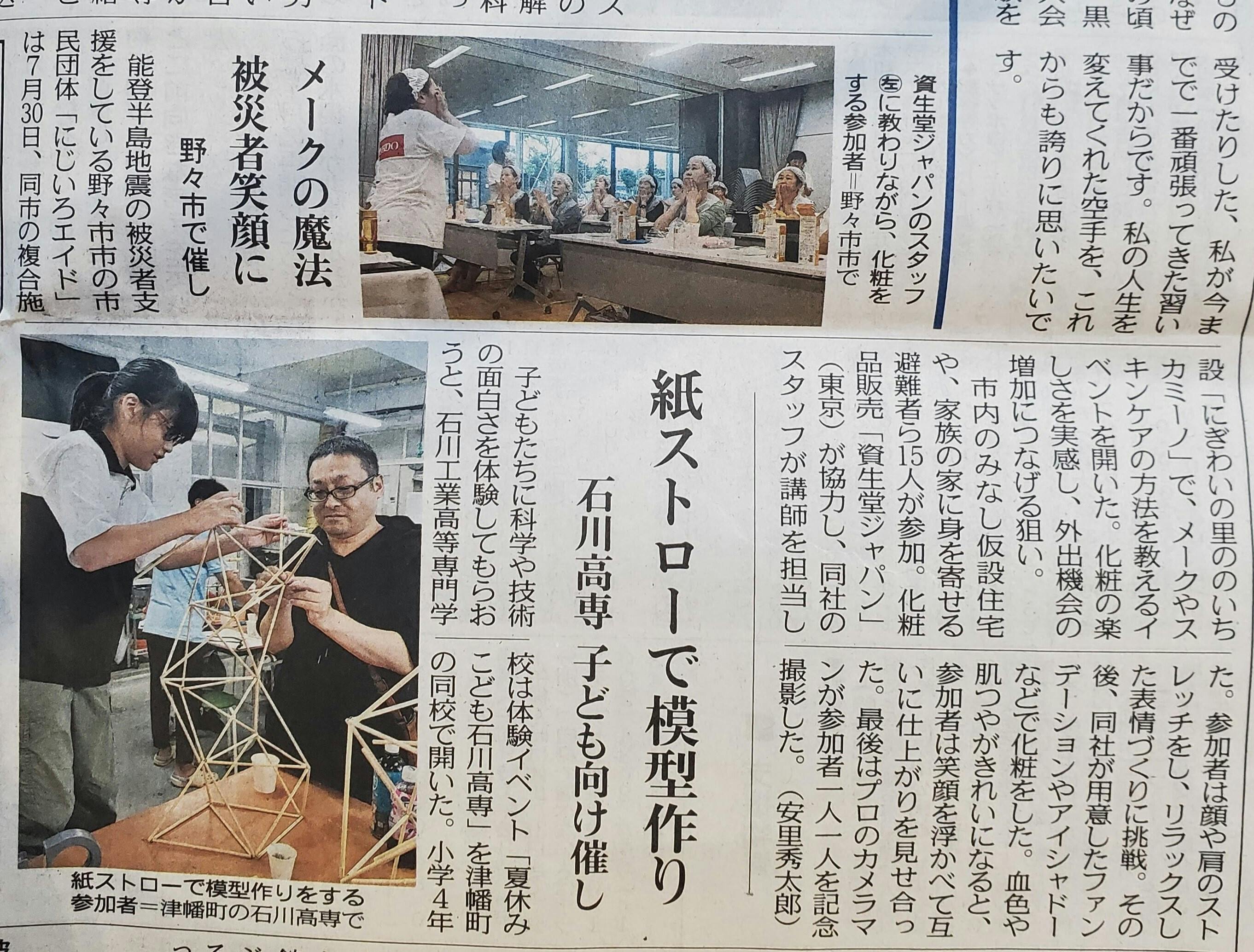 北國新聞、北陸中日新聞の2社に掲載され、とても嬉しいです。
