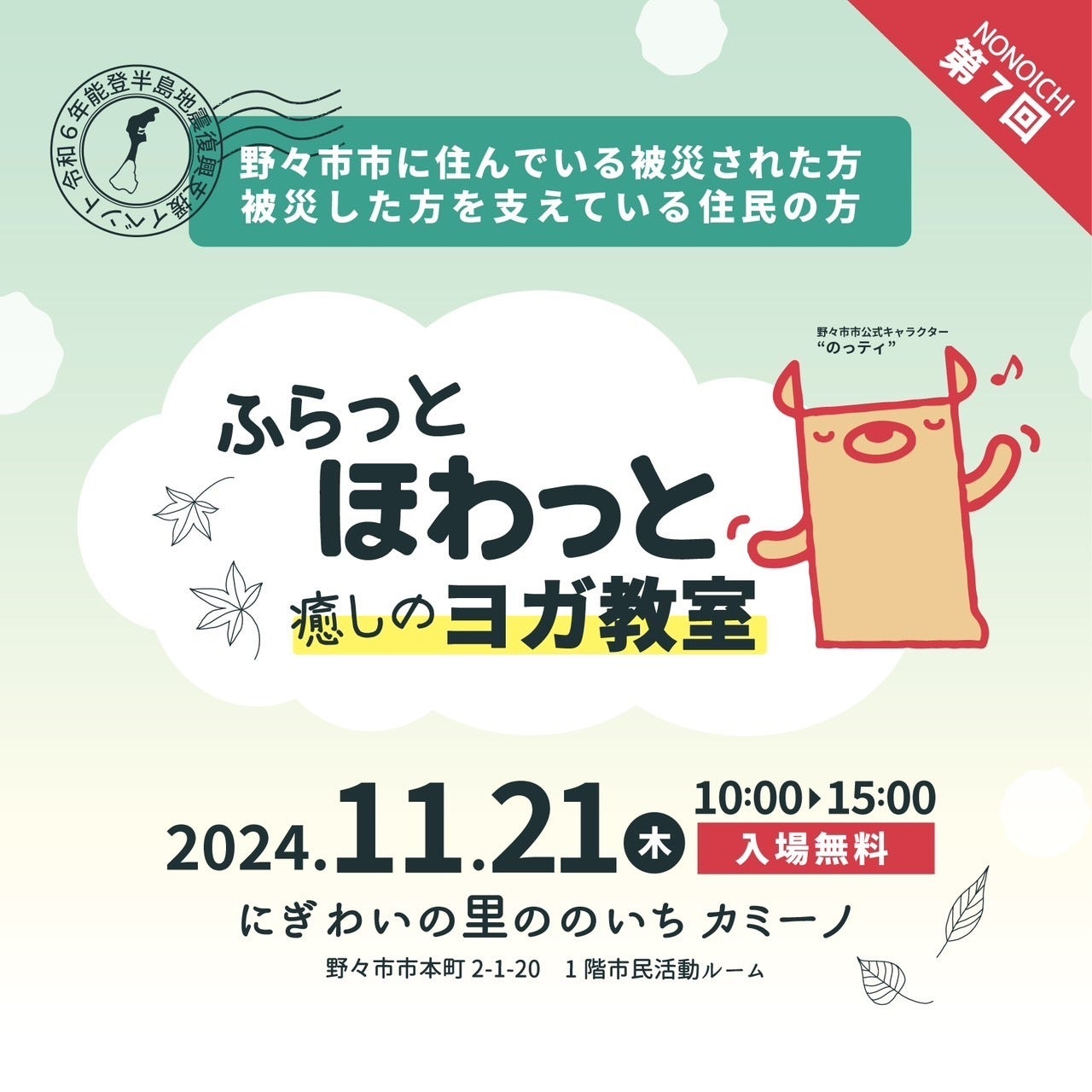 さて、今度のにじいろエイドのイベントですが、11月21日(木)に、EMBRACE野村さんによる『癒しのヨガレッスン』を行います☆