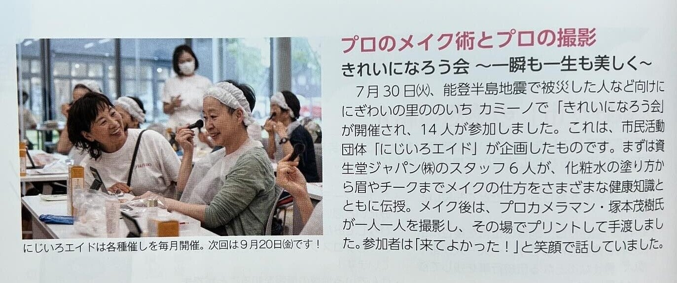 野々市市広報に掲載されました!!資生堂の方も、参加者の方もとてもいい表情をしていますよね☆