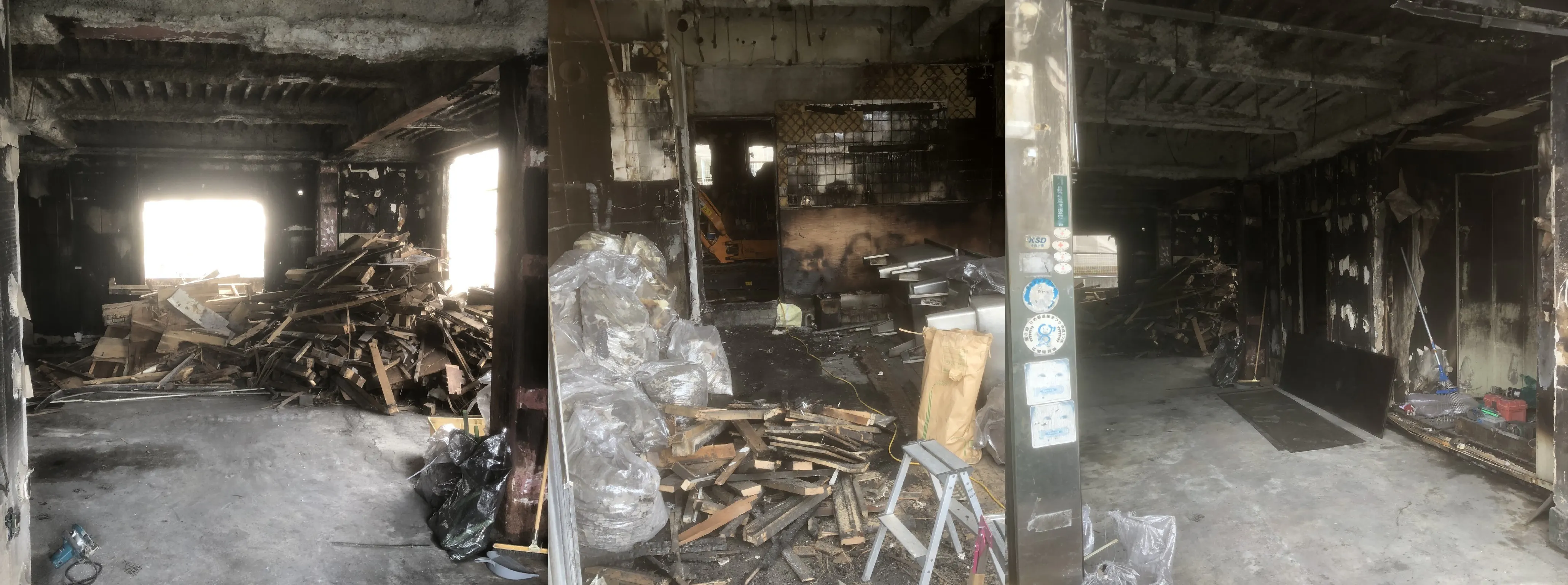 火の勢いが早く、店舗が全焼してしまいました。