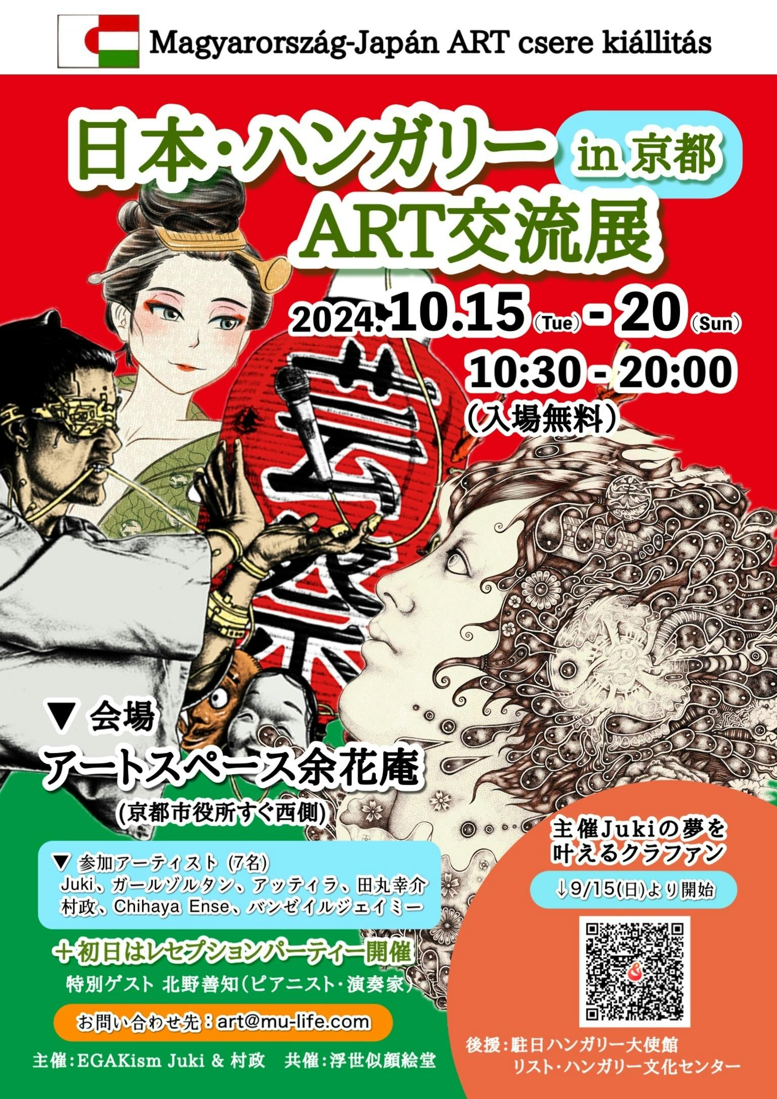 昨年、ハンガリーに長年在住していた画家のJukiさんと出会い、意気投合しました。彼の夢である「日本とハンガリーの芸術交流」を叶えるべく、芸術交流展を計画。世界に誇る文化都市「京都」を舞台に、駐日ハンガリー大使館様の後援を得て、日本・ハンガリーART交流展を開催することにいたしました。