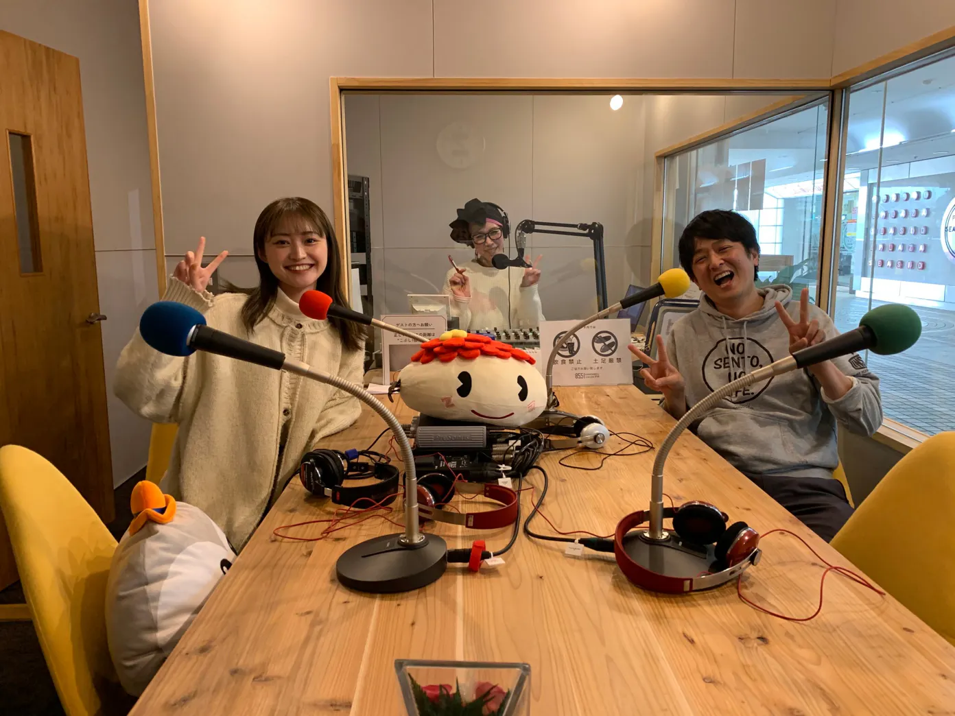 番組開始20分前にスタジオ集合(本館2Fミックスタジオ)→打合せ→出演