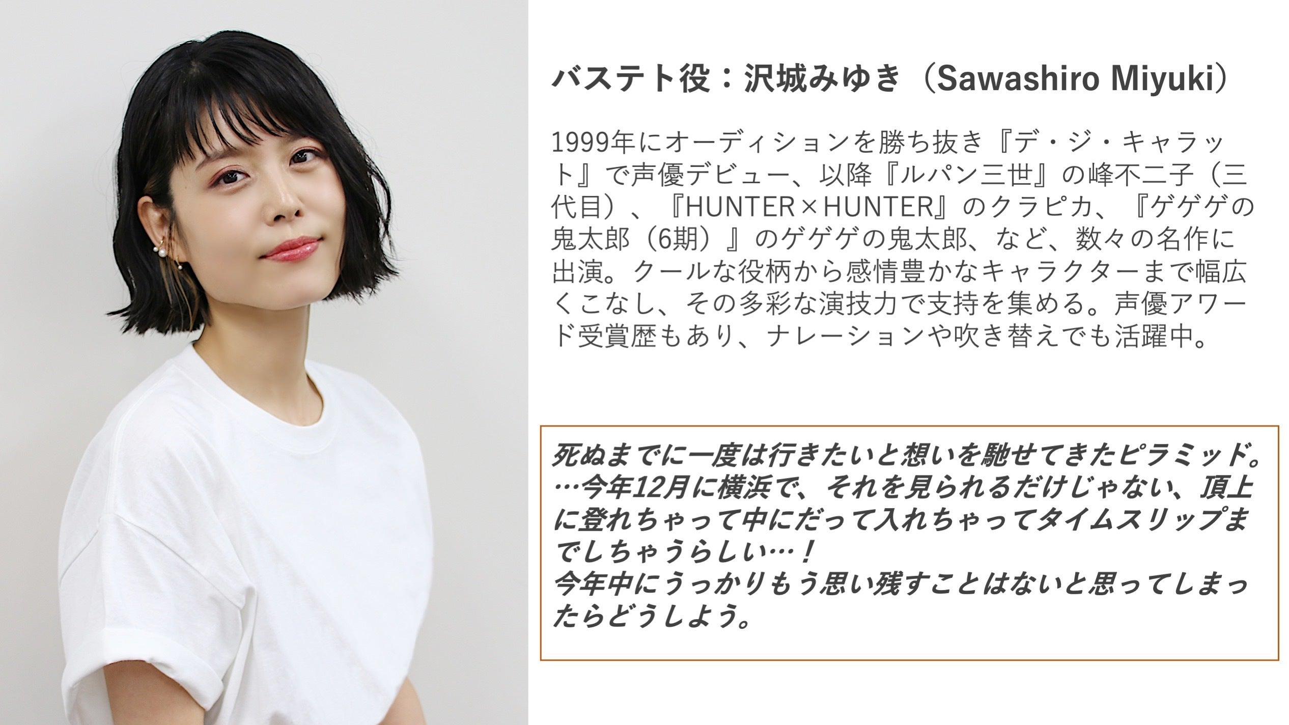 世界の七不思議で唯一現存するクフ王の荘厳なピラミッド。ガイド役のモナに導かれた来訪者たちは、ピラミッド内部に足を踏み入れます。古代エジプト建築の傑作「大回廊」を抜け、「ファラオの石棺」の解説に耳を傾けていると、突如、暗闇が訪れて……